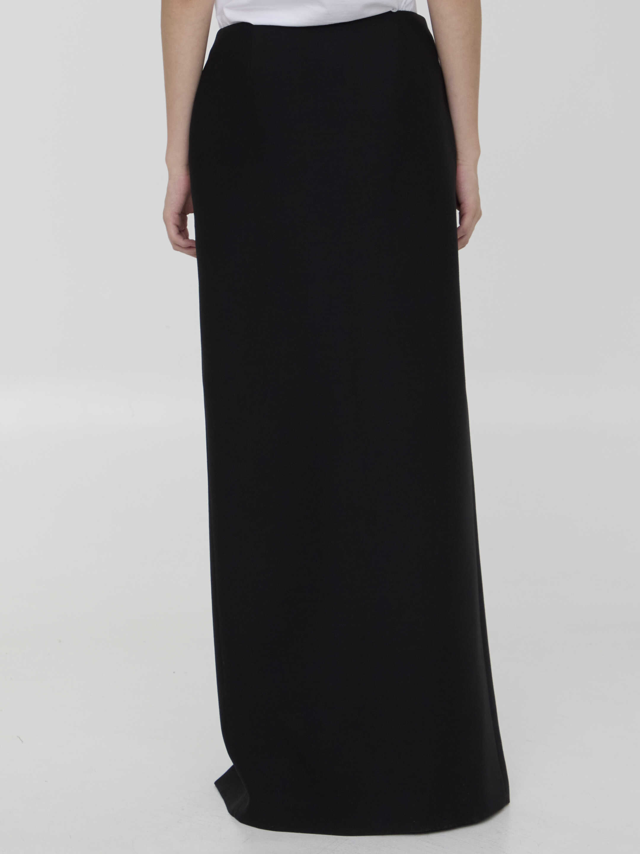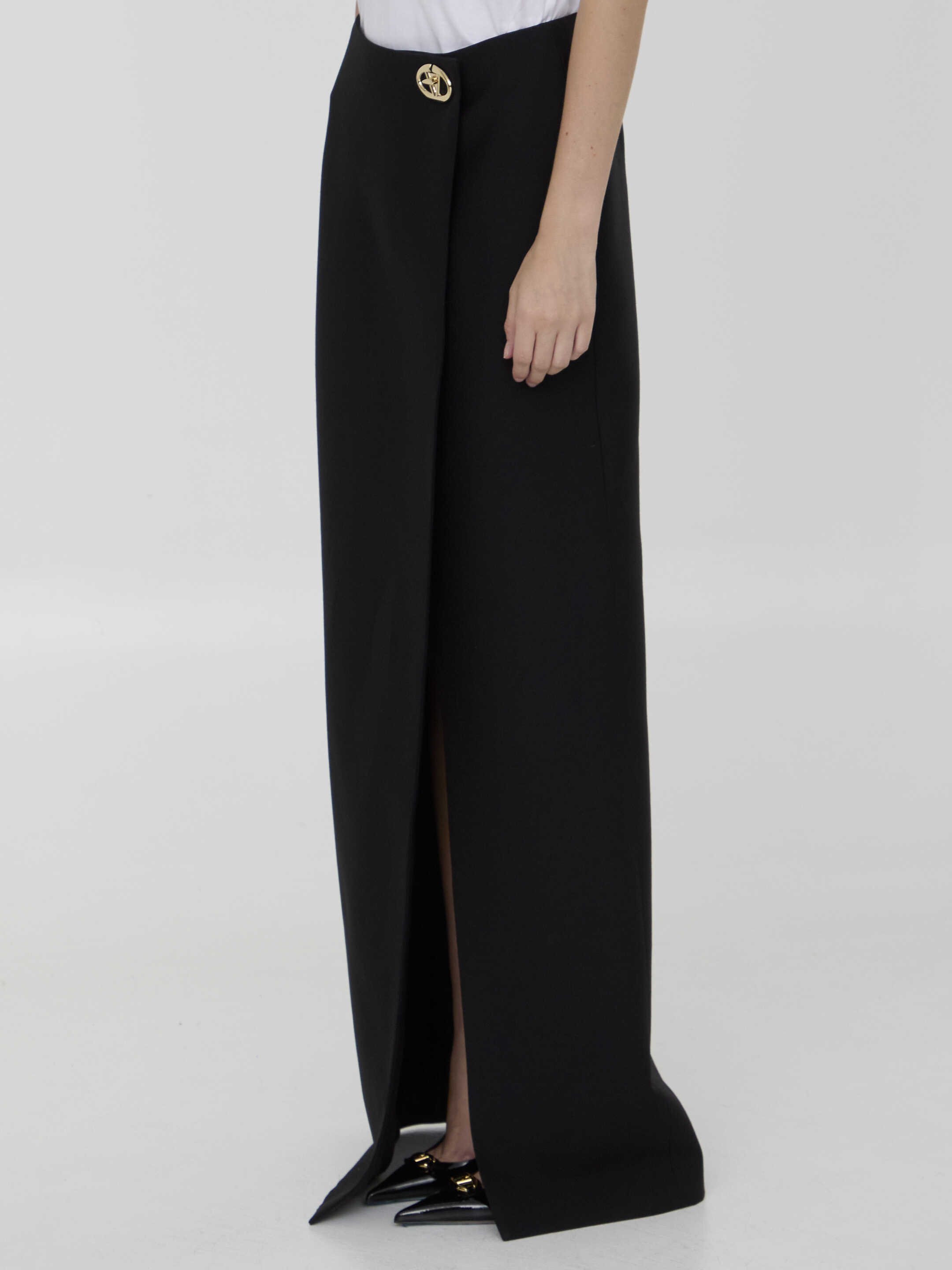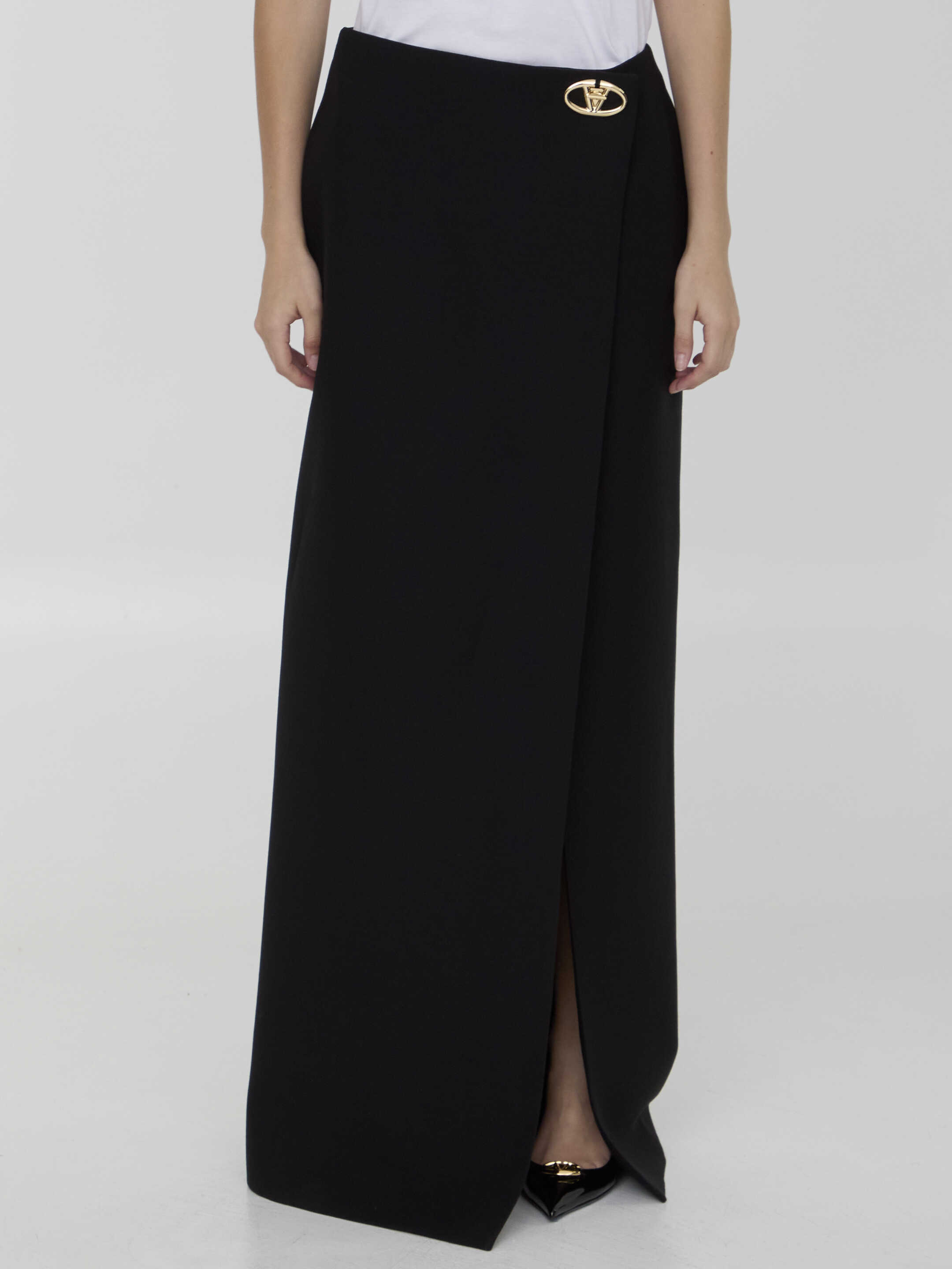 Long skirt in black Crepe Couture. It features wrap closure with VLogo The Bold Edition turn-lock detail in gold-tone metal and front slit. Regular fit.