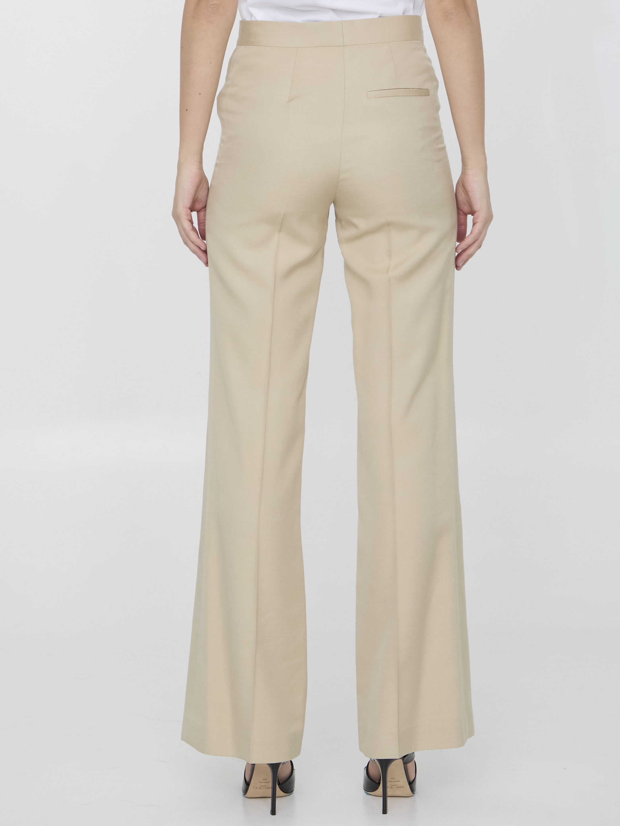 Iconic flare pants in sand-colored viscose. It features zip, button and hook-and-eye closure, two side welt pockets and one rear welt pocket. Regular fit.