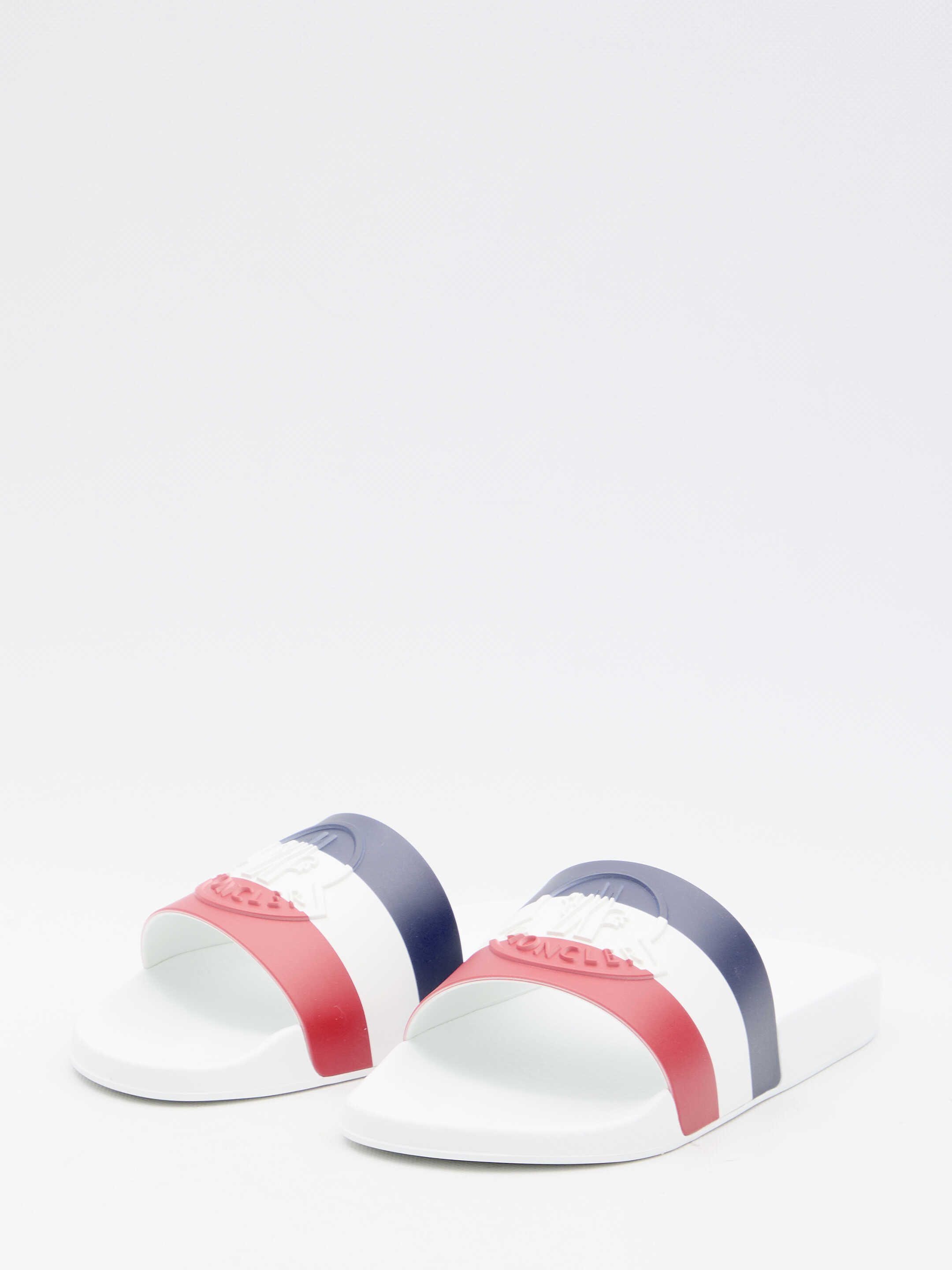 Basile Slide in white, blue and red rubber with embossed Moncler logo. EVA sole.
