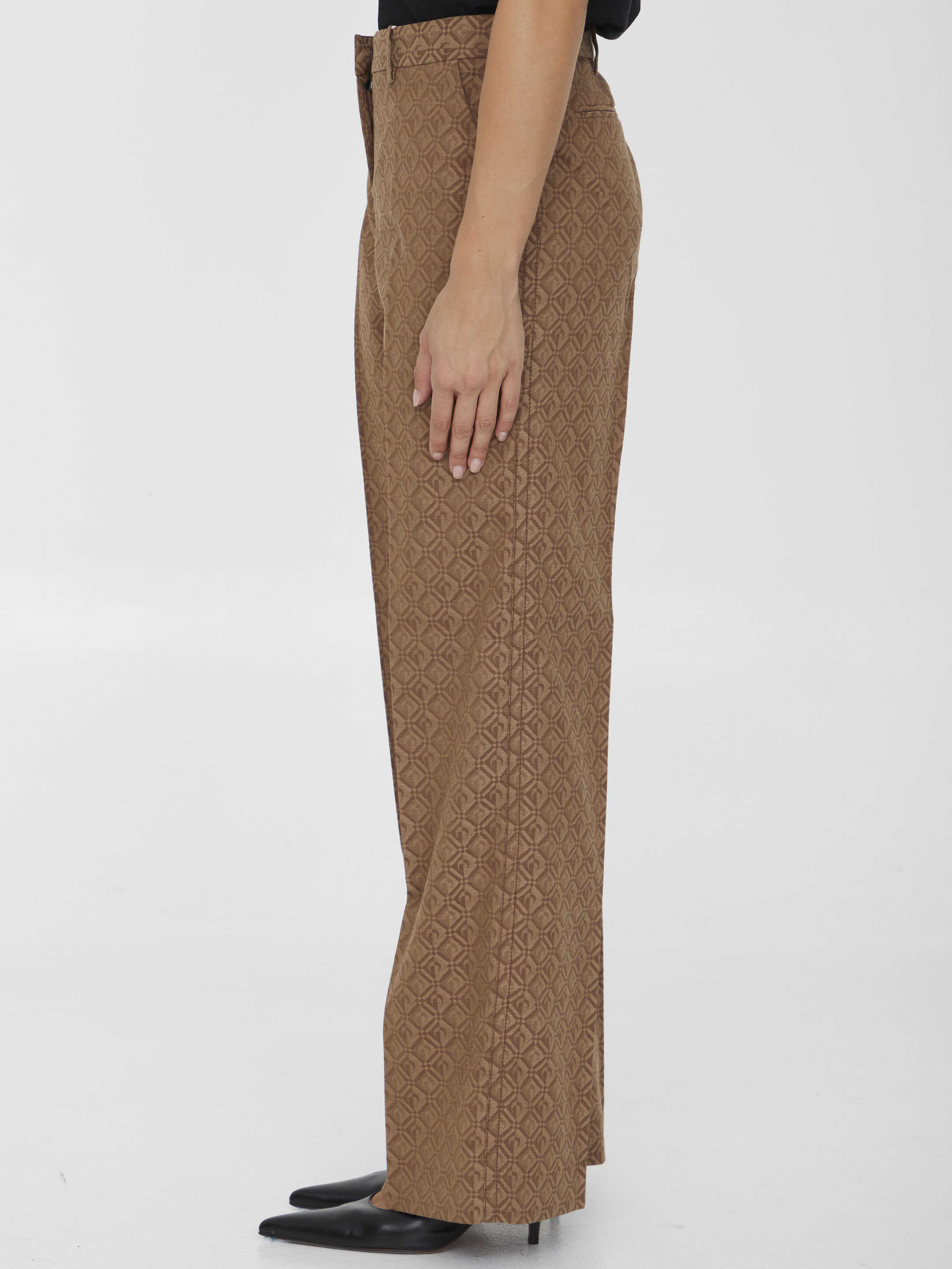 Straight-leg tailored pants in regenerated beige wool blend with all-over Moon Diamant print. It features zip and hook closure, two side welt pockets, two rear welt pockets and belt loops. Regular fit.