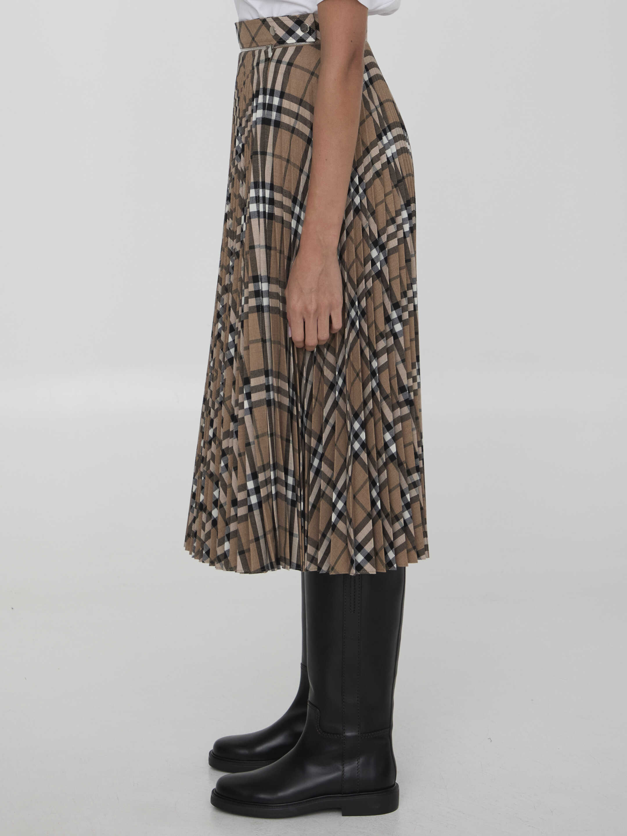 Pleated skirt in wool blend with Burberry Check motif. It features zip and press-stud fastening and slit. Regular fit.