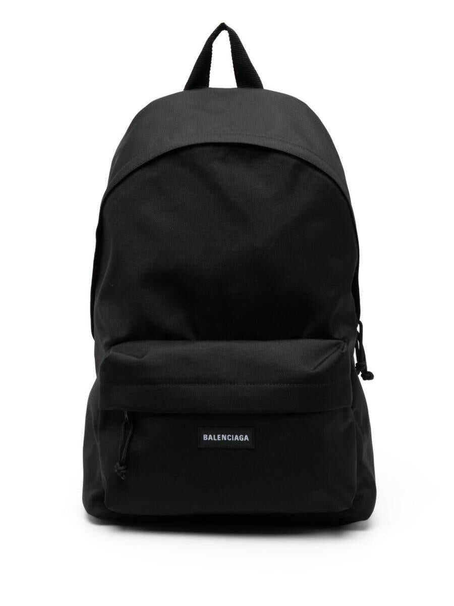 Balenciaga's backpack crafted in black recycled nylon. It features black metal hardware, double-slider zip fastening, top handle and adjustable buckled shoulder straps. Black canvas-lined interior with zip pocket and laptop compartment. The design is completed by front zip pocket embellished by the iconic logo label.