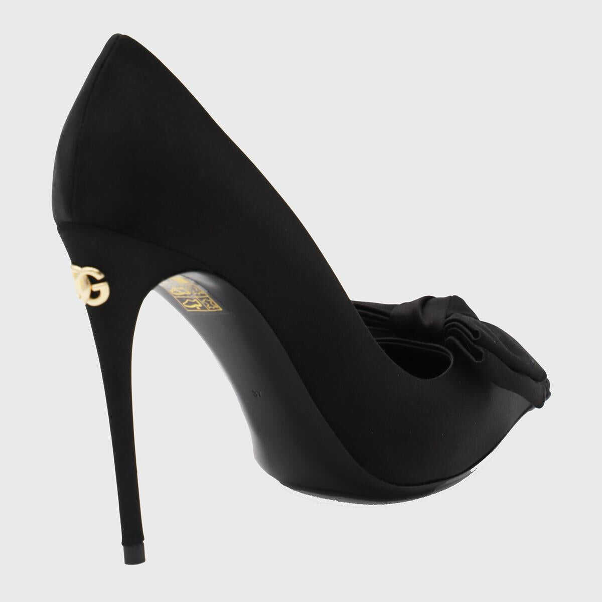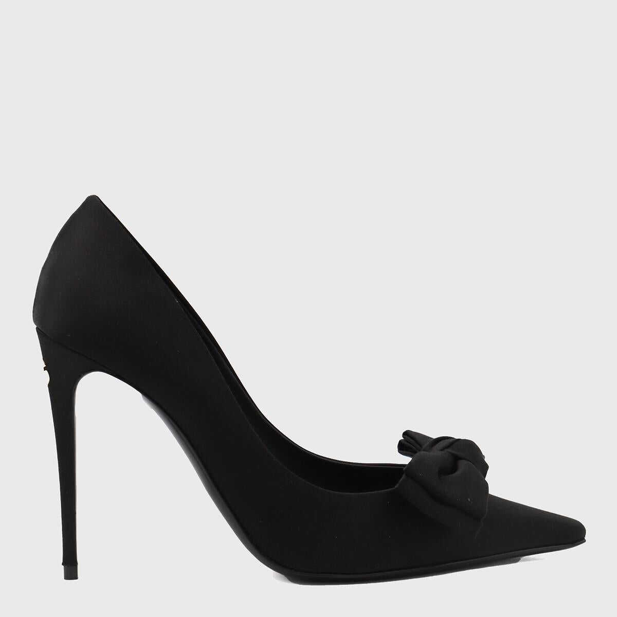 black satin finish slip-on style 105mm high stiletto heel gold-tone logo plaque bow detailing pointed toe branded leather insole leather sole