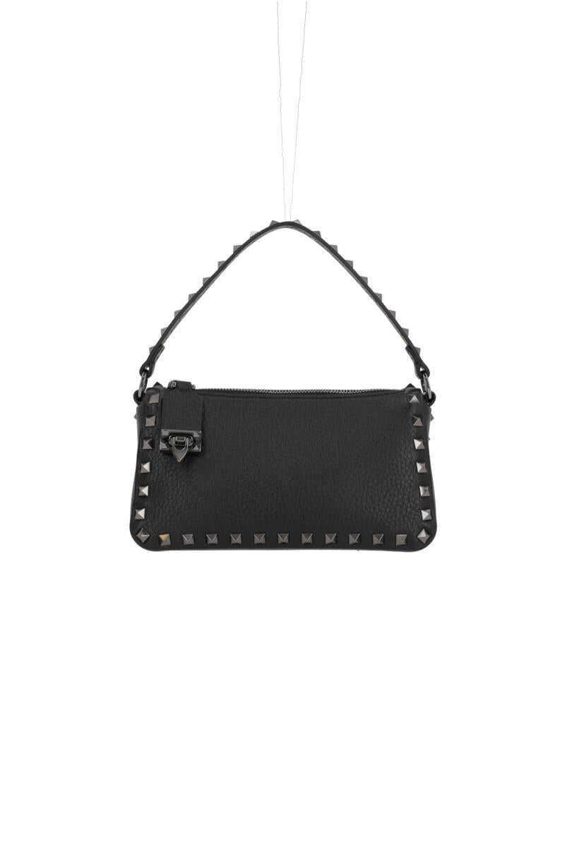 Valentino Garavani's shoulder bag crafted in black grained leather adorned with signature ruthenium-tone metal studs. Featuring zip and hook closure, top handle and removable shoulder strap. Tone-on-tone suede-lined interior with card slot. The design is completed by the unmistakable logo embossed at back.