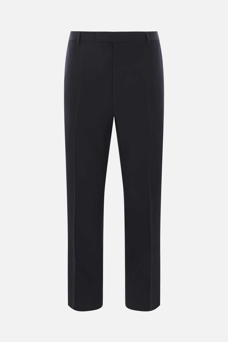 Gucci trousers crafted in blue wool gabardine. Featuring a front closure with hook / button / zip, belt loops, multiple pockets, central pressed crease and a partially lined interior.