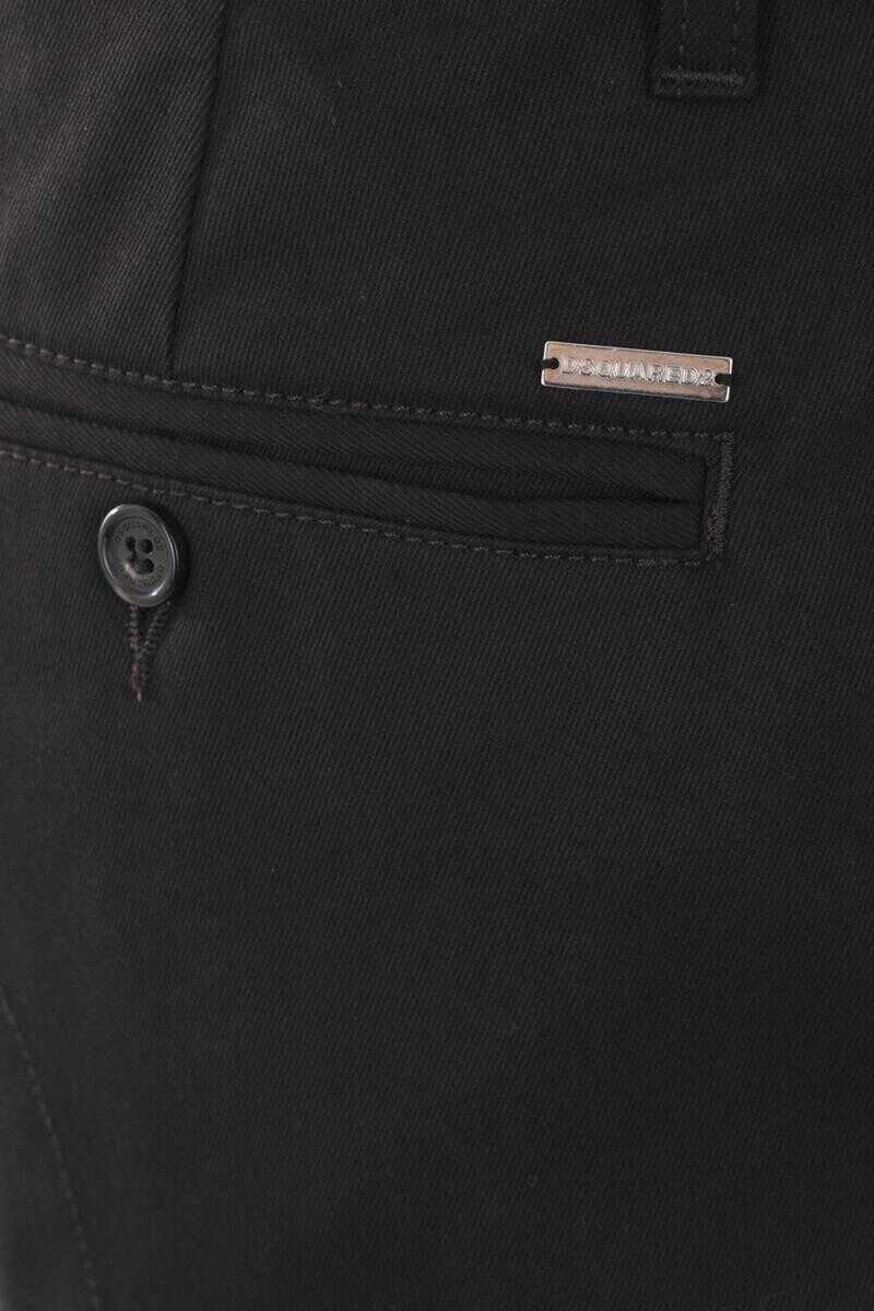 Dsquared2 cargo trousers crafted in black stretch cotton drill. Featuring button closure, belt loops, multiple pockets and the iconic metal logoed plaque at the back.