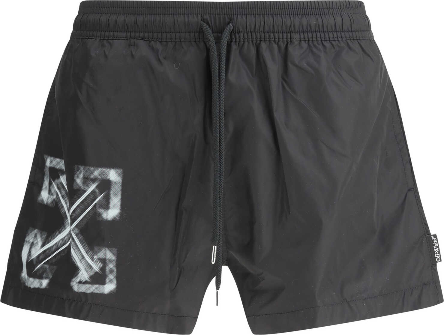 Vibe Arrow Swimsuit by Off-White is a sporty-chic piece that combines comfort and iconic style. The elasticated waistband with drawstring allows for a customized fit, while the two side welt pockets and patch pocket on the back offer functionality and practicality. The contrasting print on the front gives the suit a distinctive and recognizable touch.