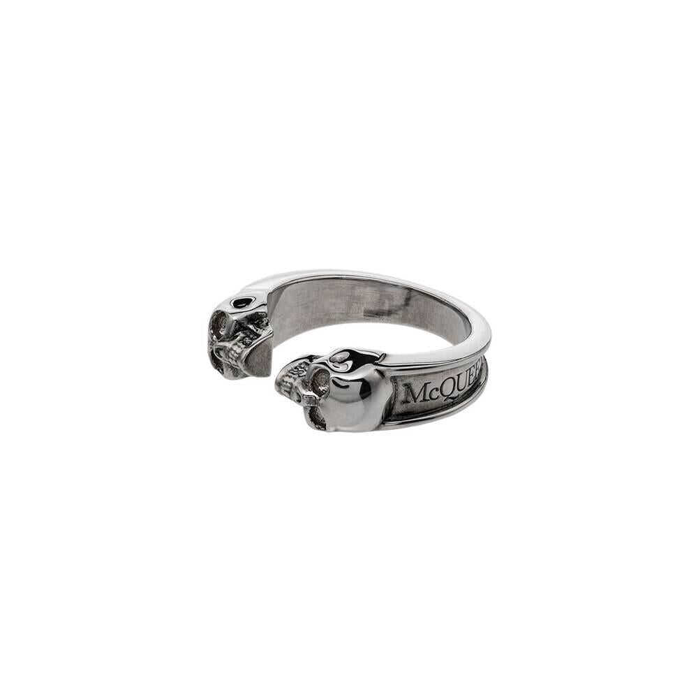 For many years, the skull has been a long-standing emblem of alexander mcqueen, capturing the brand’s dark yet alluring essence. incorporate the label's iconic motif into your everyday looks with this silver-plated metal twin skull ring. featuring a double skull motif design and a logo-engraved band.