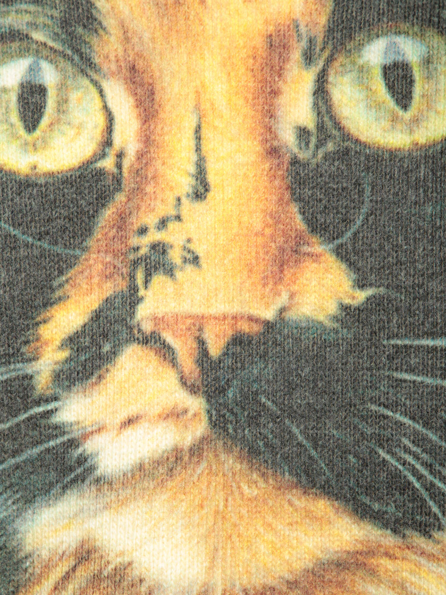 Long sleeve knitted sweater. Crew neck. Full cat print design.. This J.W Anderson sweater catches the eye with its bold cat print, enhanced with green shades that fade towards the edges for a unique and striking visual effect.