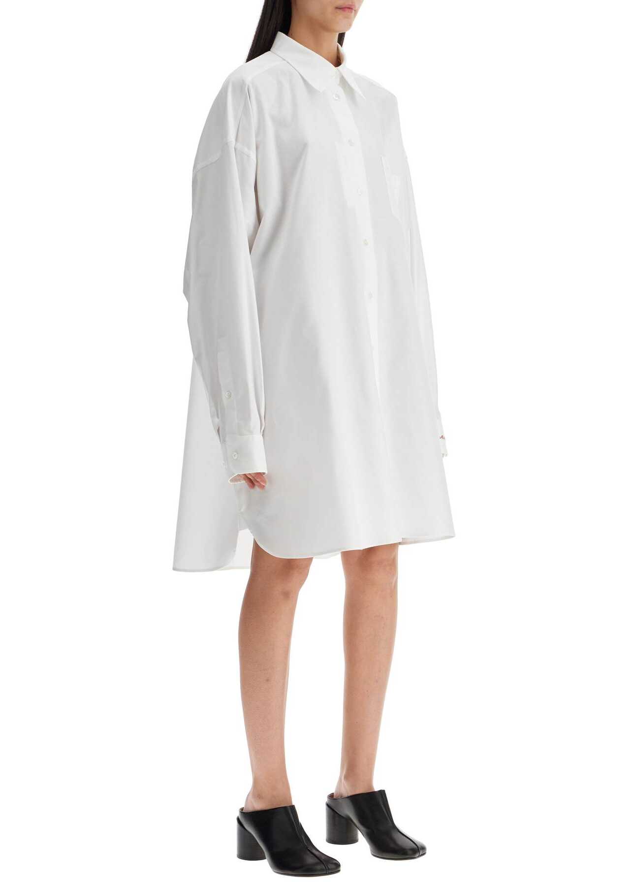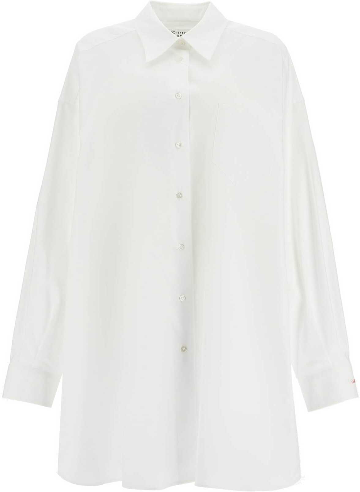 This Maison Margiela maxi shirt is made of striped cotton poplin and features distressed details on the cuffs and a chest pocket. The classic collar and button closure complete the design. The model is 177 cm tall and wears size XS.