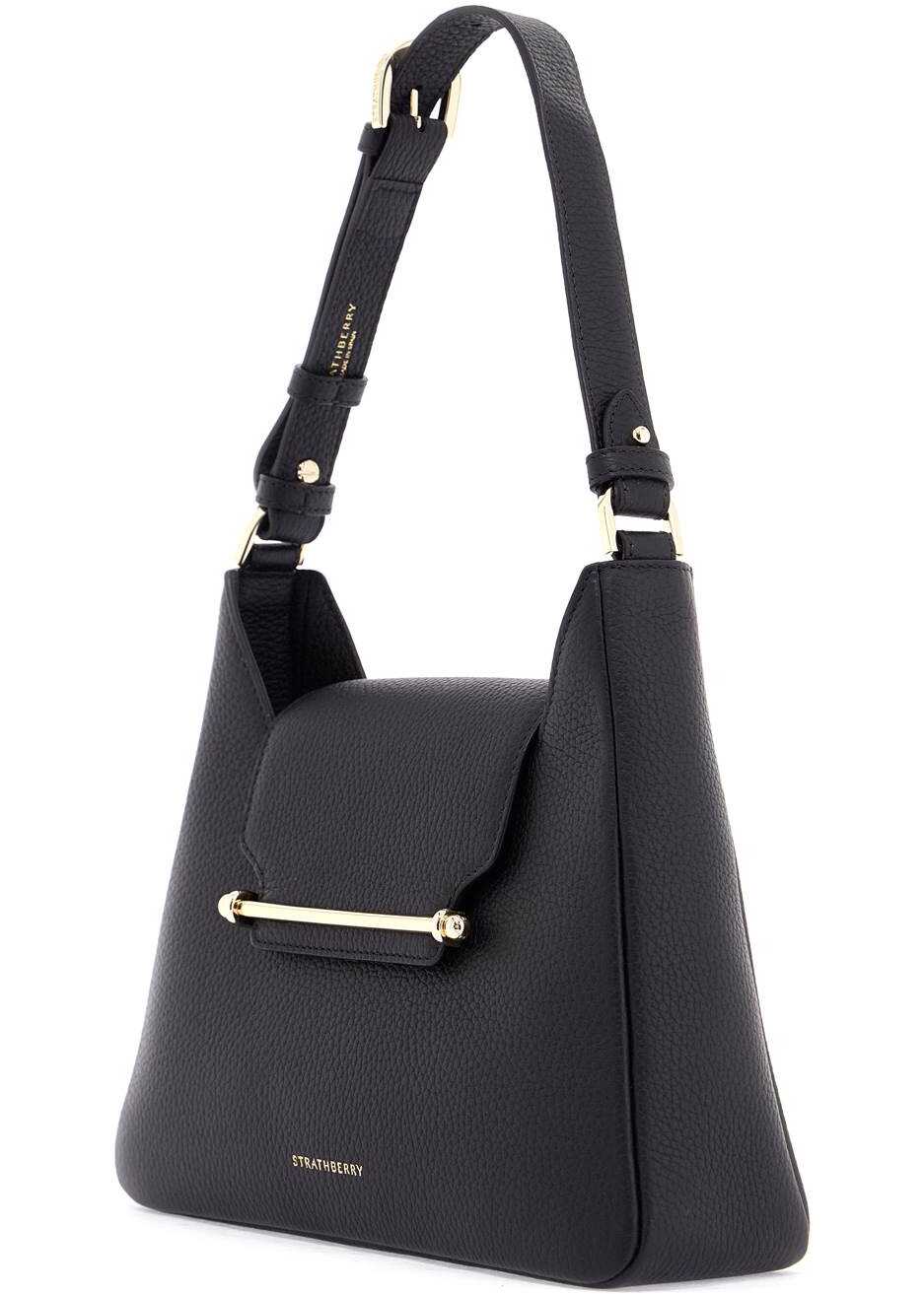 Strathberry "Multrees Hobo" shoulder bag made of soft grained leather with iconic metal Bar applied to the flap. Structured shape, magnetic closure, suede interior with one open pocket, adjustable handle and a second adjustable and detachable shoulder strap for a crossbody look. Gold-finished metalware.