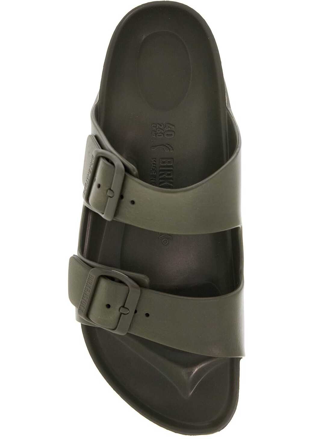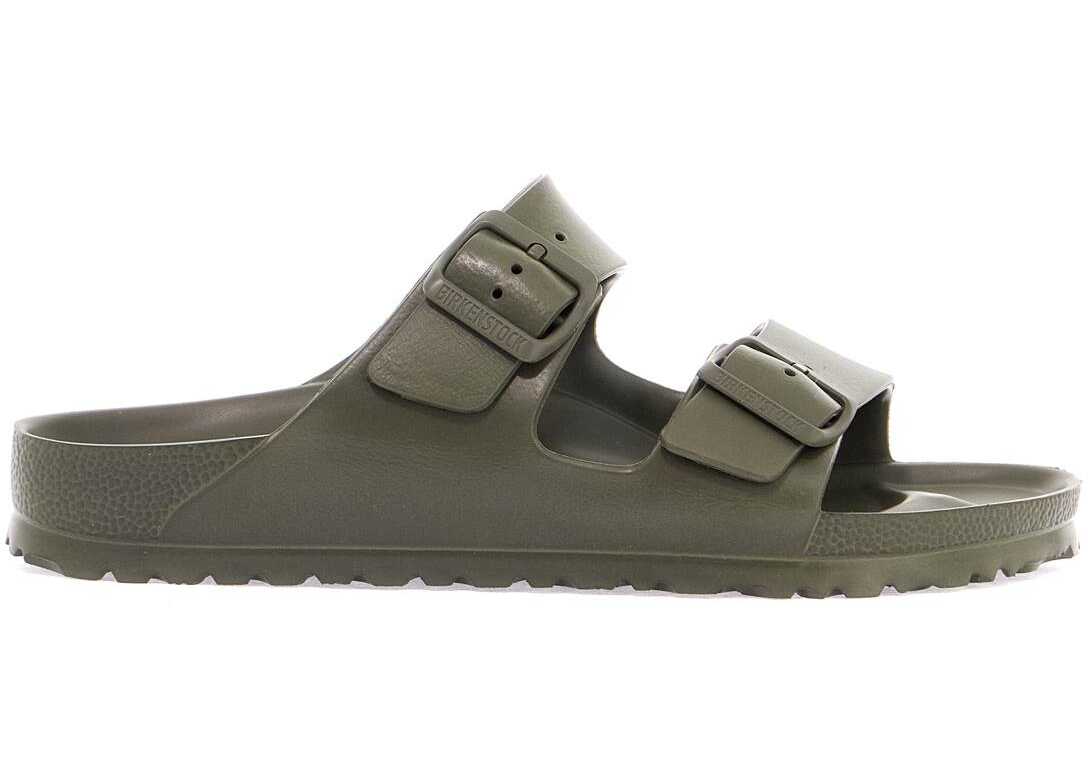 Birkenstock Arizona slides entirely crafted in EVA with moulded insole and double adjustable strap with tone-on-tone plastic buckle with debossed logo. Narrow fit.