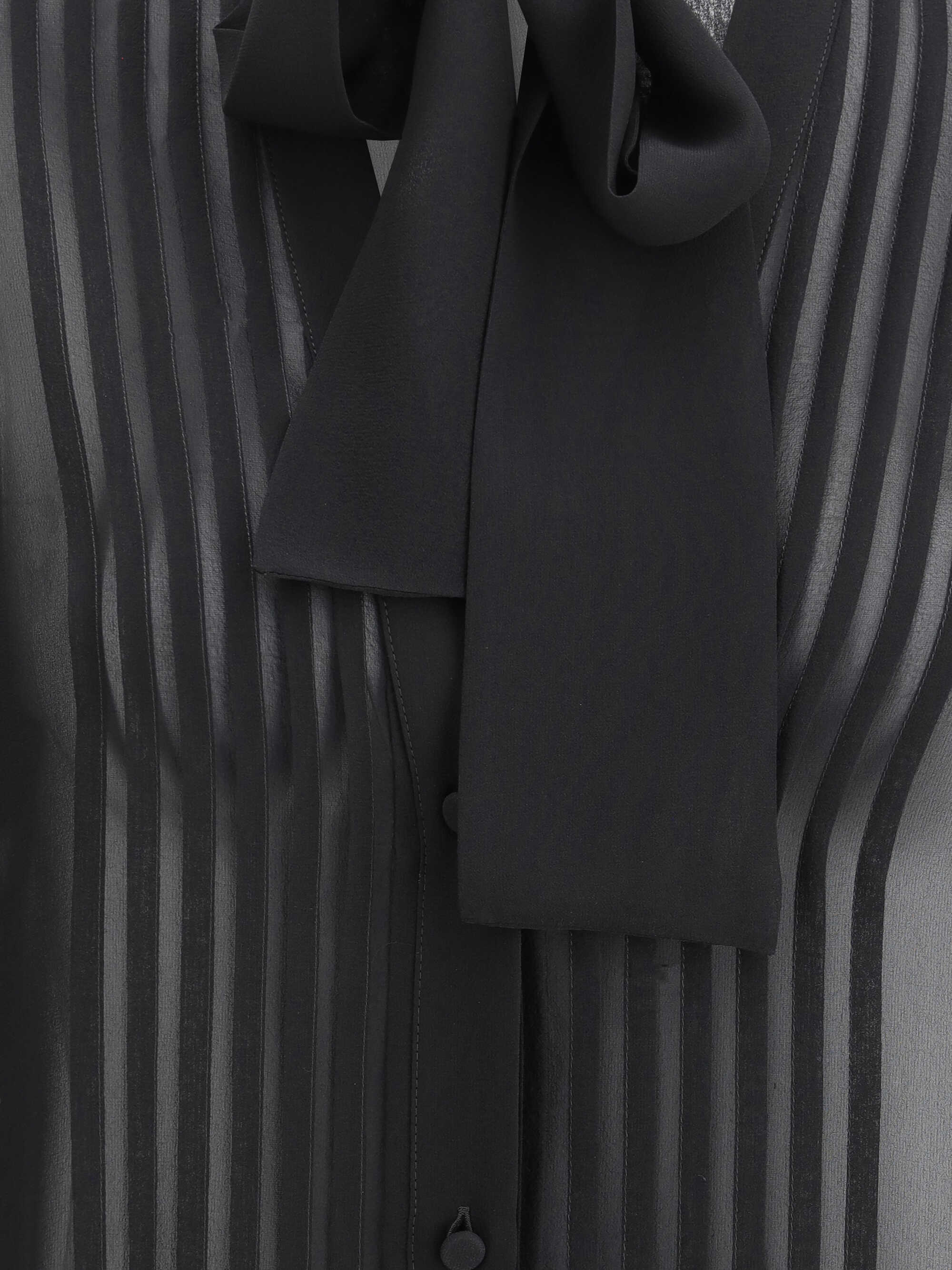 Tom Ford's silk georgette Shirt is a sophisticated and refined garment featuring a slight transparency. It features a front button closure and a V-neckline that enhances its elegant design. Puff shoulders and adjustable button cuffs add a touch of femininity and originality, while the monochrome pattern ensures versatility and class. An ideal garment for those seeking a chic and distinctive look.
