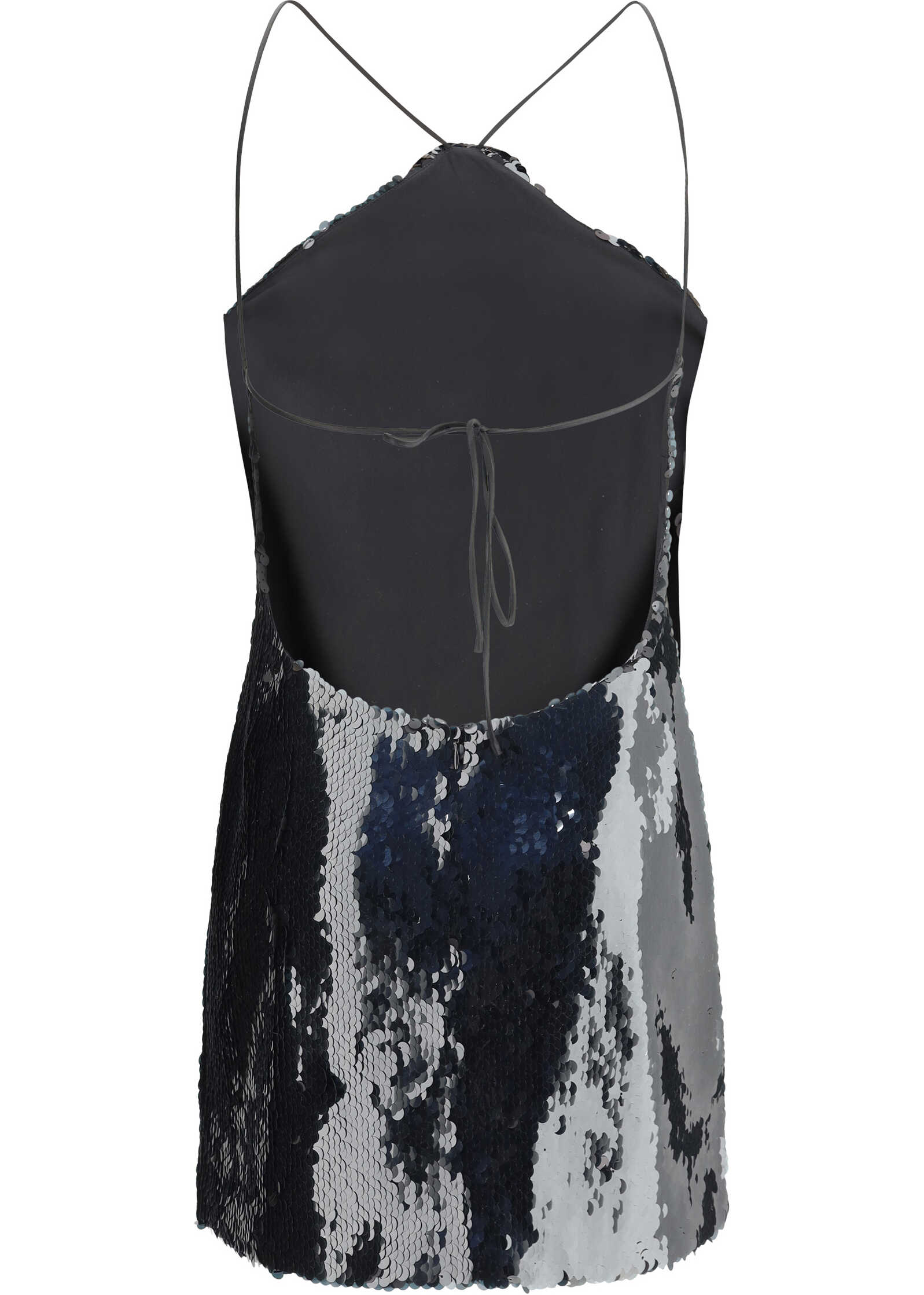 Magda Butrym's sequin mini dress is a sleeveless style with an elegant and sophisticated design. It features an American-style closure adjusted by laces, which emphasize the line of the neck and shoulders, and a zipper at the back that makes it easy to wear. The brand's iconic 3D rose is applied to the front, adding a distinctive and refined touch. The all-over sequin design gives the garment a luminous effect, perfect for special events or glamorous evenings.