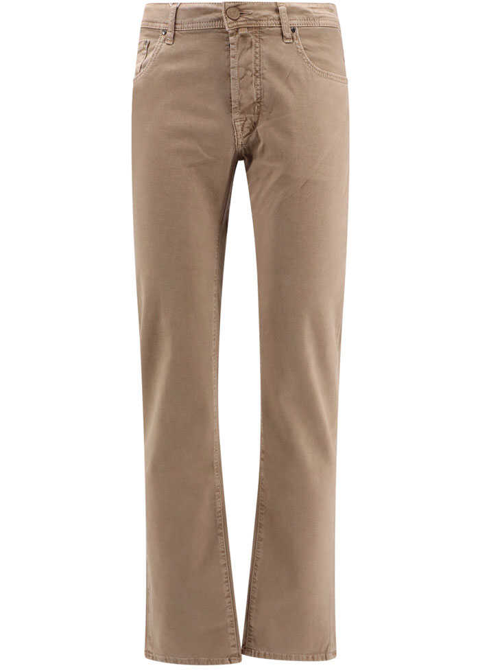 Regular slim fit cotton trouser with back pony-skin patch
