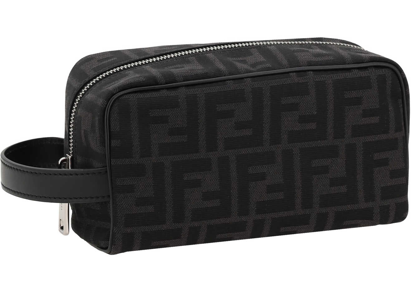 Fendi's FF-patterned jacquard fabric Beauty Case is an elegant and practical accessory. The top closure features a zipper, which ensures safe and easy opening. The leather handle, attached to the side panel, provides a comfortable grip and allows the beauty case to be carried with ease. Inside, there is a single compartment, perfect for storing items neatly