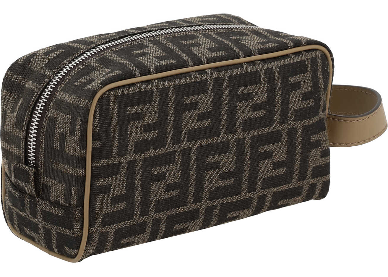 Fendi's FF-patterned jacquard fabric Beauty Case is an elegant and practical accessory. The top closure features a zipper, which ensures safe and easy opening. The leather handle, attached to the side panel, provides a comfortable grip and allows the beauty case to be carried with ease. Inside, there is a single compartment, perfect for storing items neatly