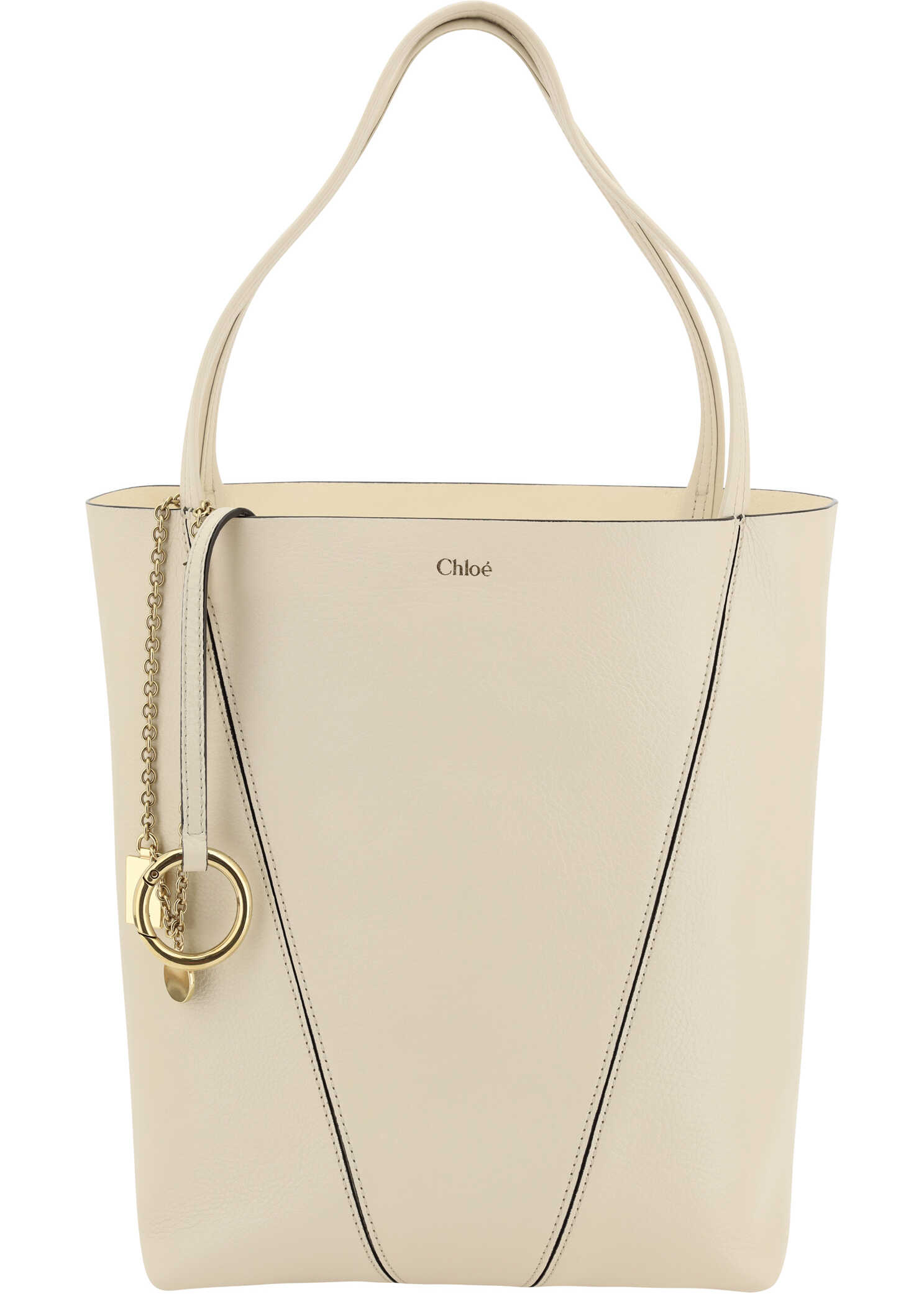 Leather Spin Shoulder Bag by Chloé is a refined and modern accessory featuring a sleek grained leather design. The two flat top handles offer a comfortable and practical grip, while the brand's iconic monogram, press-stamped on the front, adds a distinctive touch of luxury. The closure of the bag is made via a ring that holds the two handles together, an element that gives it a unique and functional look. A fascinating detail is the chain with a pendant bearing the iconic logo applied to the handle. The interior of the bag consists of a single compartment.