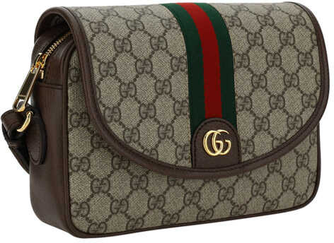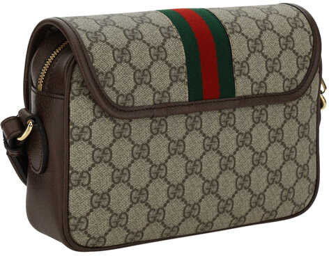 Ophidia Shoulder Bag by Gucci, webing shoulder strap with iconic brand colors removable and adjustable, iconic all-over repeated GG supreme fabric, magnetic flap closure on front, interior zipper closure, interior welt pocket, iconic GG plaque embossed on front and gold-plated.