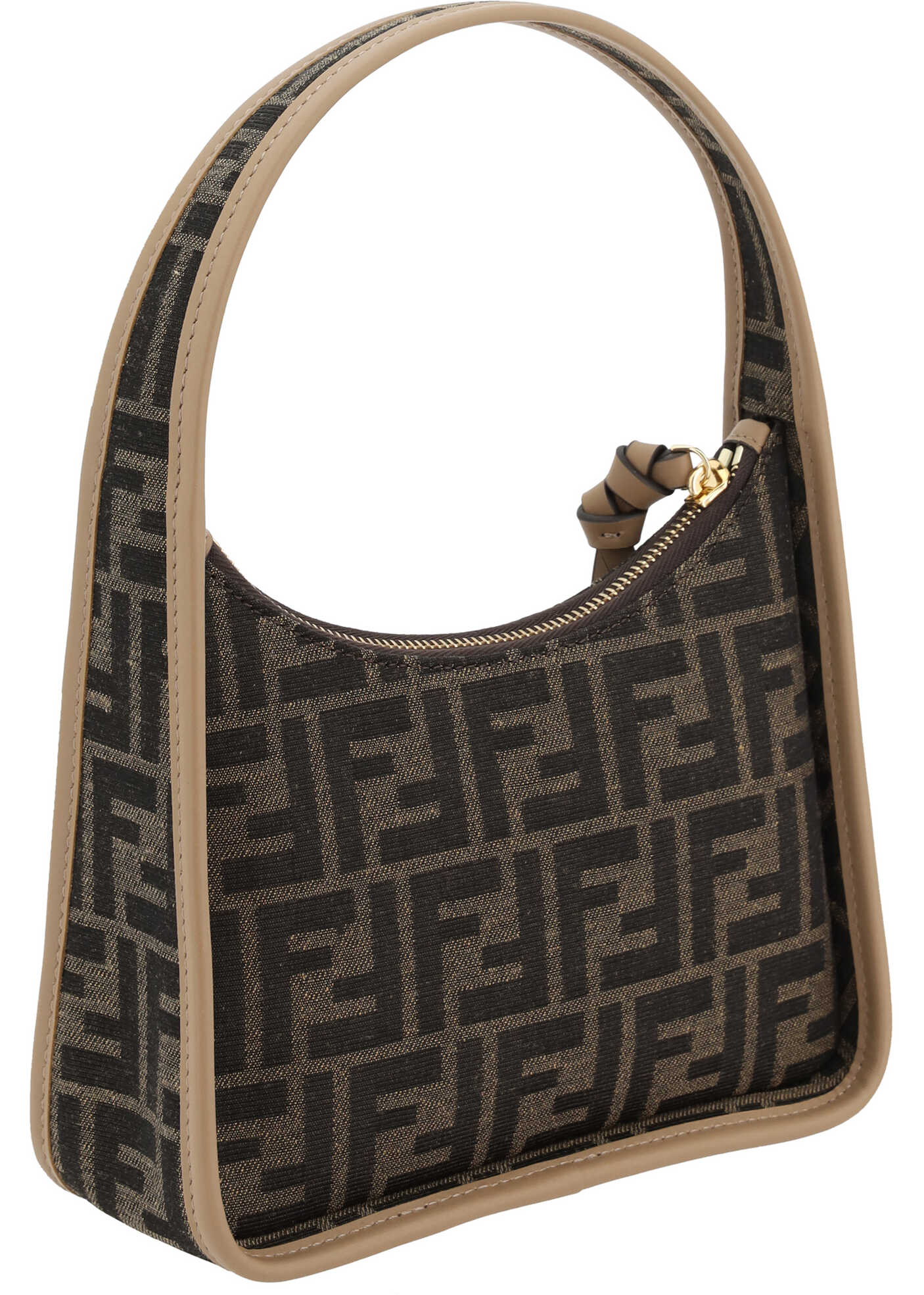 Fendi's Mini Fendessence Shoulder Bag, made of jacquard fabric with the iconic FF pattern, is an elegant and compact accessory perfect for those seeking practicality without sacrificing luxury. Leather details add a sophisticated and contrasting touch to the design. The zippered top closure is embellished with a knotted leather pull, giving it a distinctive and refined element. Inside, the bag features a single internal compartment, ideal for storing essentials neatly.