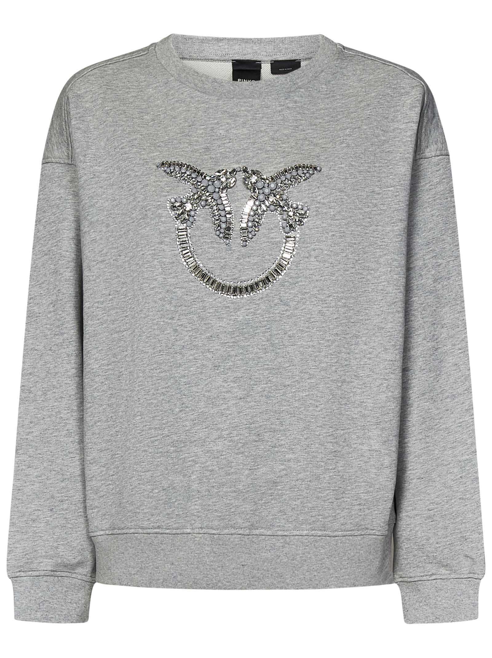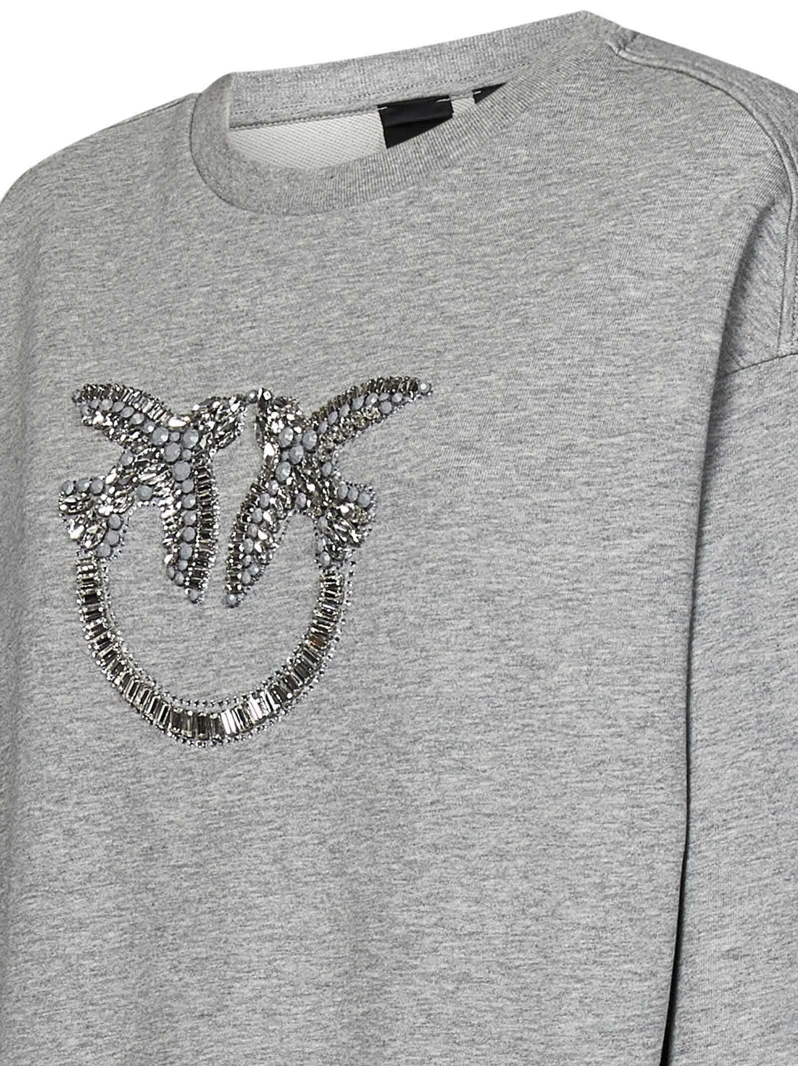 NELLY crewneck sweatshirt in grey cotton with Love Birds logo with crystals on the chest.