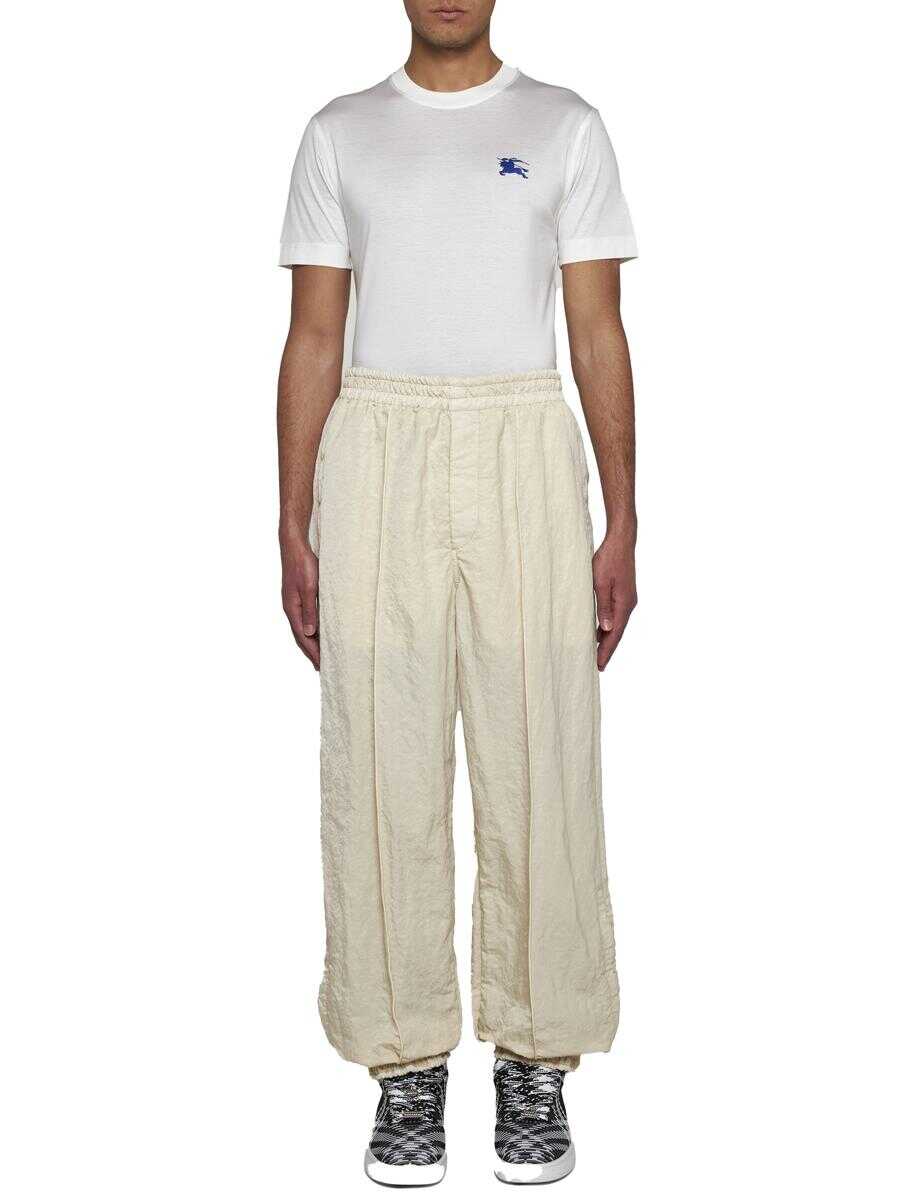 Burberry's white cotton t-shirt featuring a crew neck and blue Equestrian Knight logo embroidered on the chest.