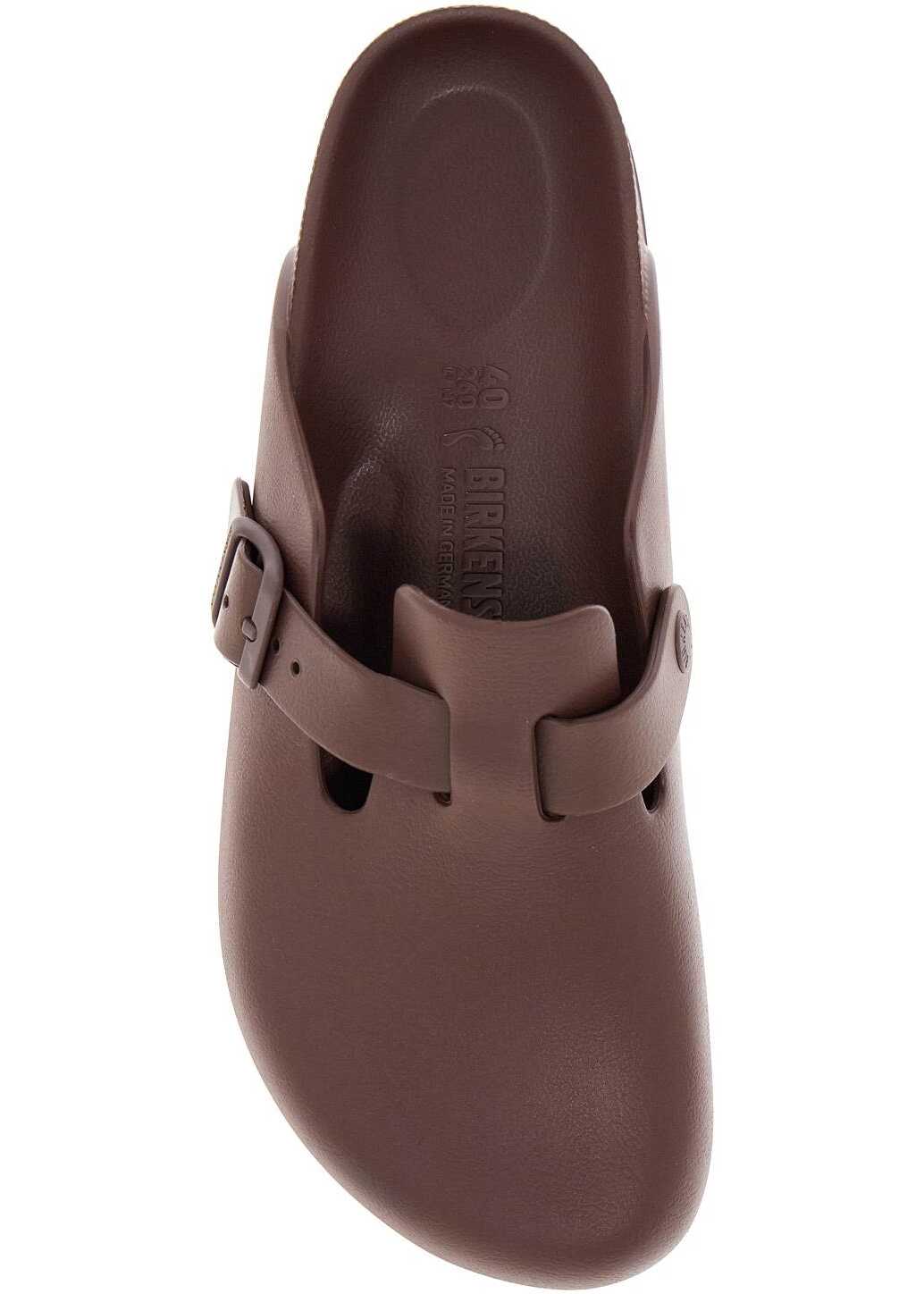 The BIRKENSTOCK Boston clogs are made of EVA with an adjustable strap and a tone-on-tone engraved buckle. The anatomical footbed features the brand's logo, while the sole is made of rubber. These clogs have a narrow fit for added comfort.