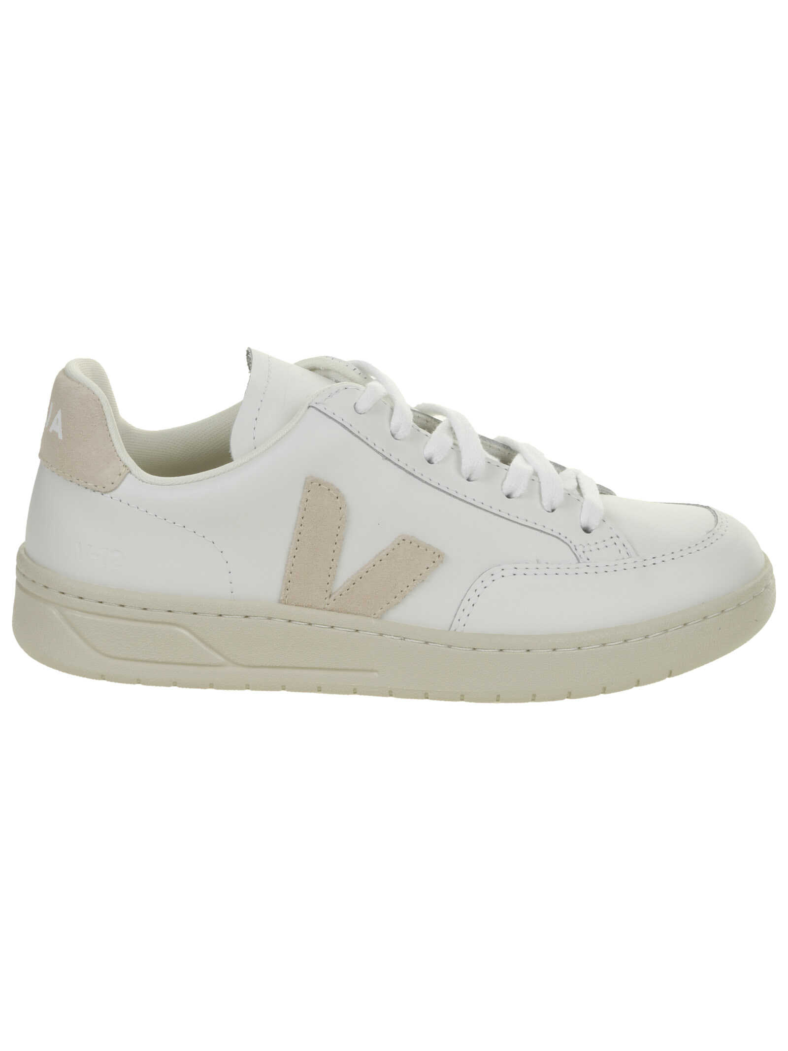 Veja Sneaker in white leather, beige logo, closure with laces, rubber sole.