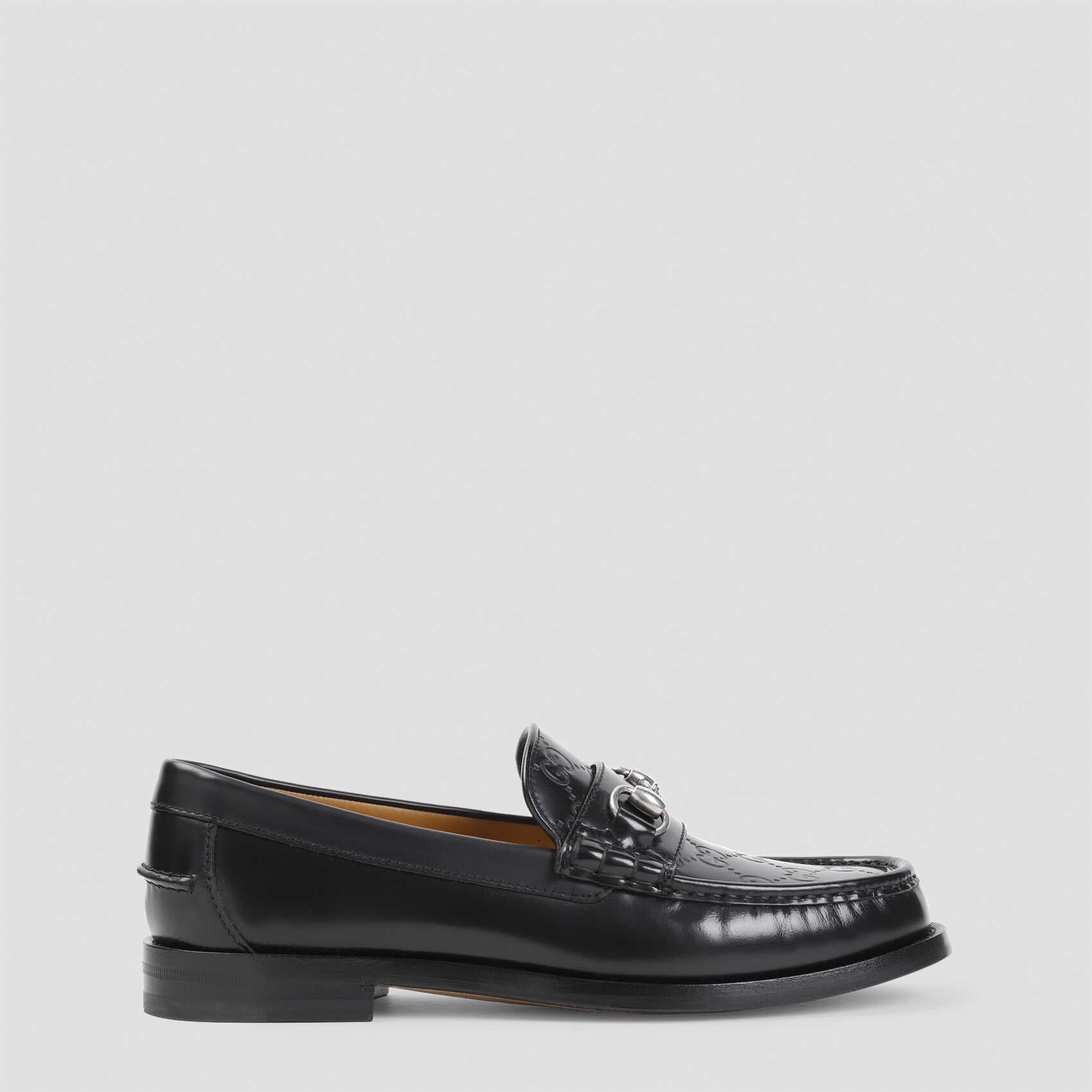 Step out in style with these sleek black GUCCI loafers. Made from 100% leather, they exude luxury and sophistication. Perfect for the modern man who values both comfort and fashion. Elevate your look with GUCCI.