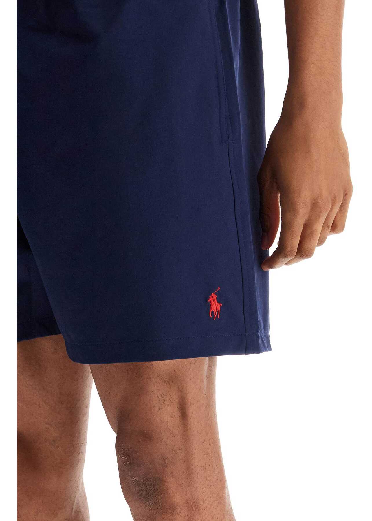 Realizzati in leggero tessuto stretch di poliestere riciclato, questi boxer mare Polo Ralph Lauren hanno una vestibilità regolare con elastico e coulisse in vita. Sono dotati di due tasche laterali e una tasca con bottone sul retro, oltre a un comodo slip interno in mesh. L'iconico logo Pony è ricamato sull'orlo sinistro. Il modello è alto 182 cm e indossa la taglia M.