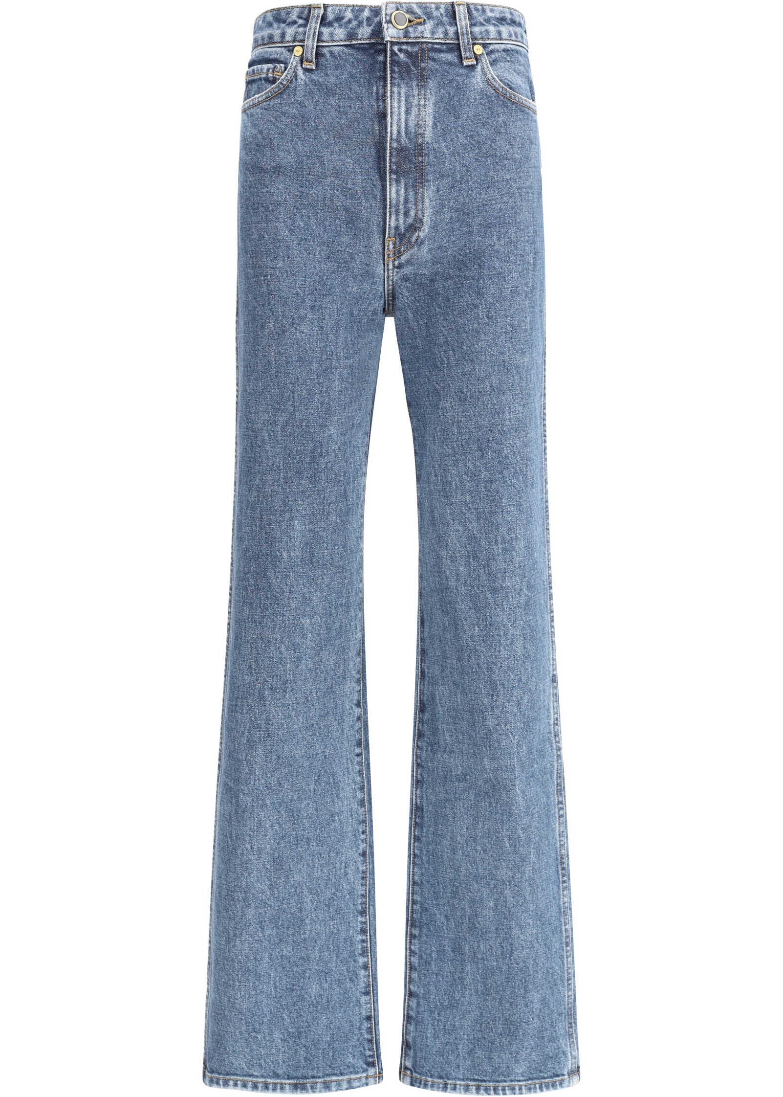 Khaite's Danielle jeans are a five-pocket flare style featuring a front zipper and button closure. The waistband features belt loops, allowing for an adjustable fit. The flare cut, which gently flares towards the bottom, creates an elongated and elegant silhouette, perfect for a sophisticated and modern look.