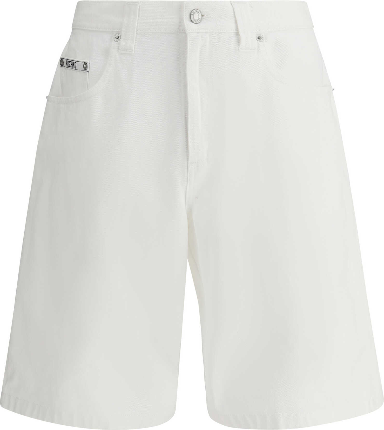 Moschino's Denim Baggy Shorts are a five-pocket design with below-the-knee length for a casual, relaxed look. The front closure is secured with a zipper and button, while belt loops on the waistband allow for a customizable fit. The baggy design gives a loose and comfortable look, perfect for a contemporary streetwear look.