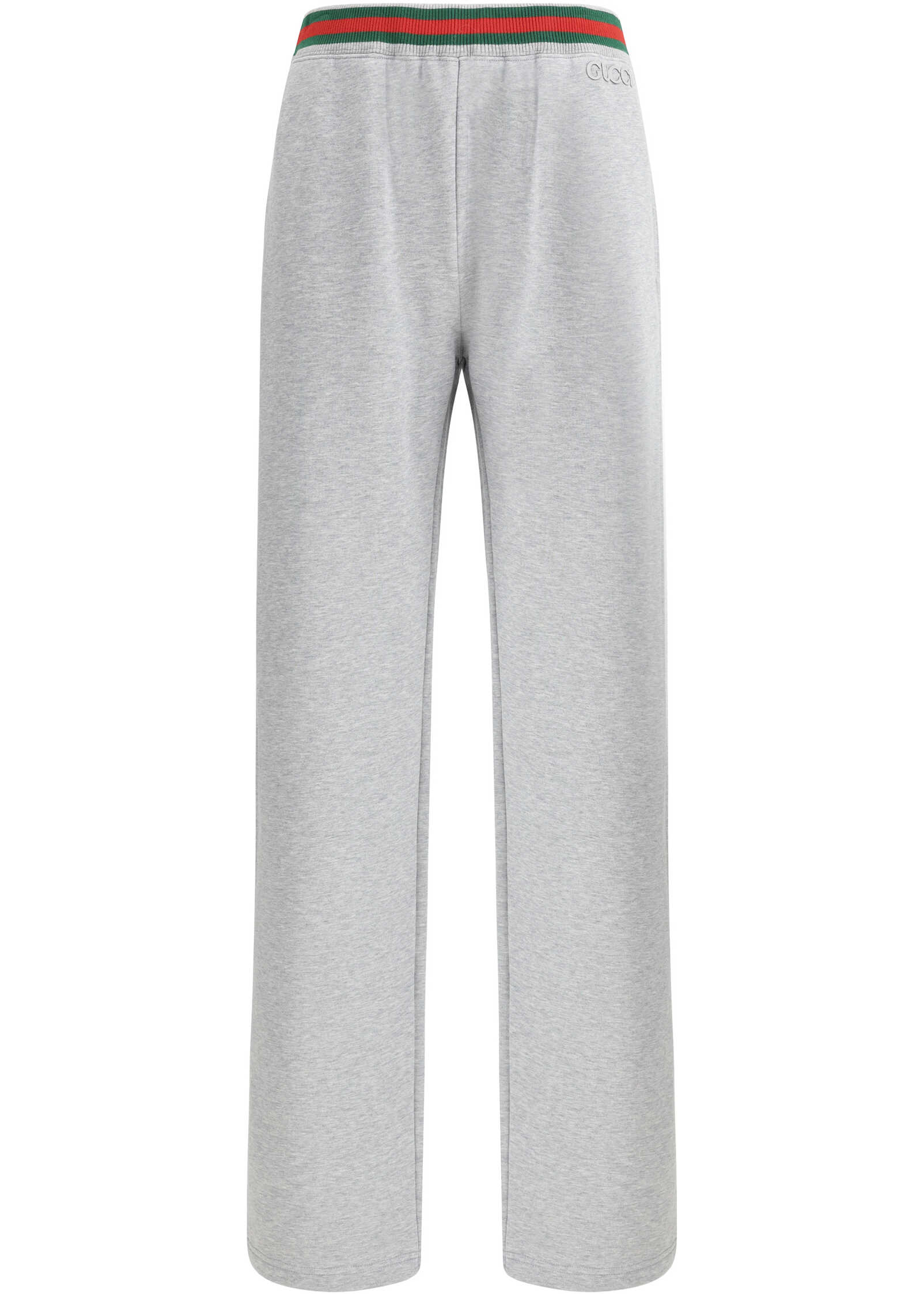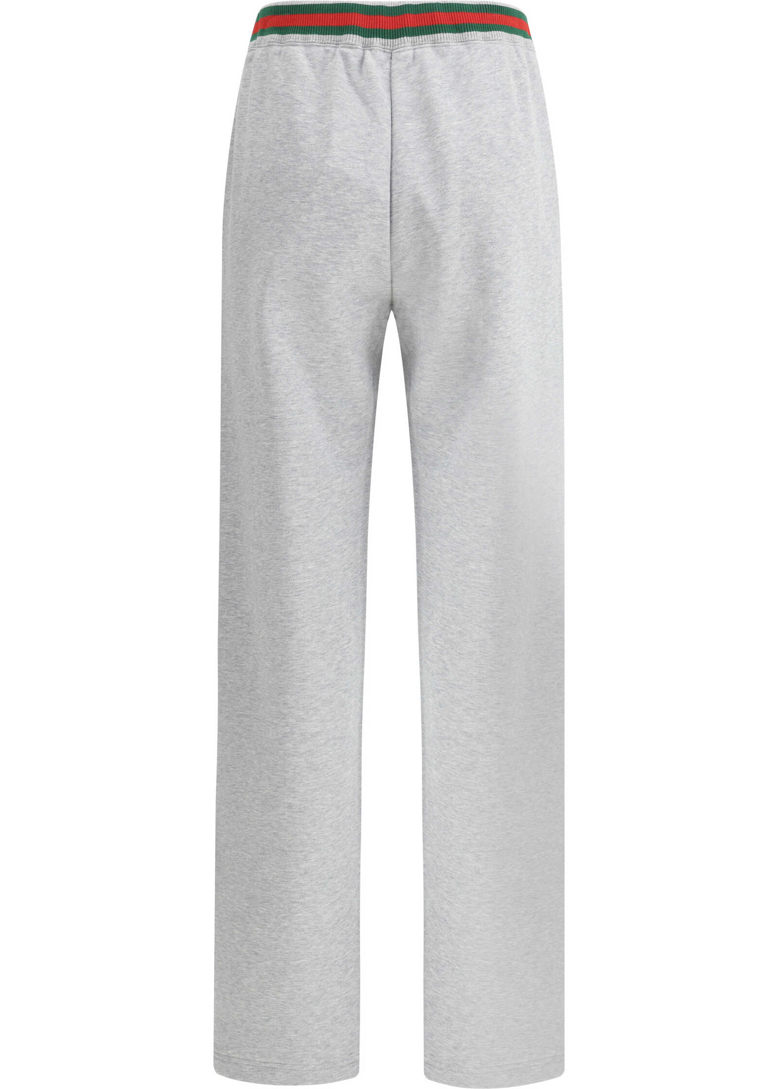Gucci's Horizontal Stripe Sweatpants feature two side welt pockets and the brand's iconic monogram stitched tone-on-tone on the front. The elasticated waistband is embellished with a tricolor horizontal colored band, the distinctive symbol of the house. The horizontal bands along the sides add a sporty and elegant touch, making these pants a versatile and trendy garment that combines comfort and style.