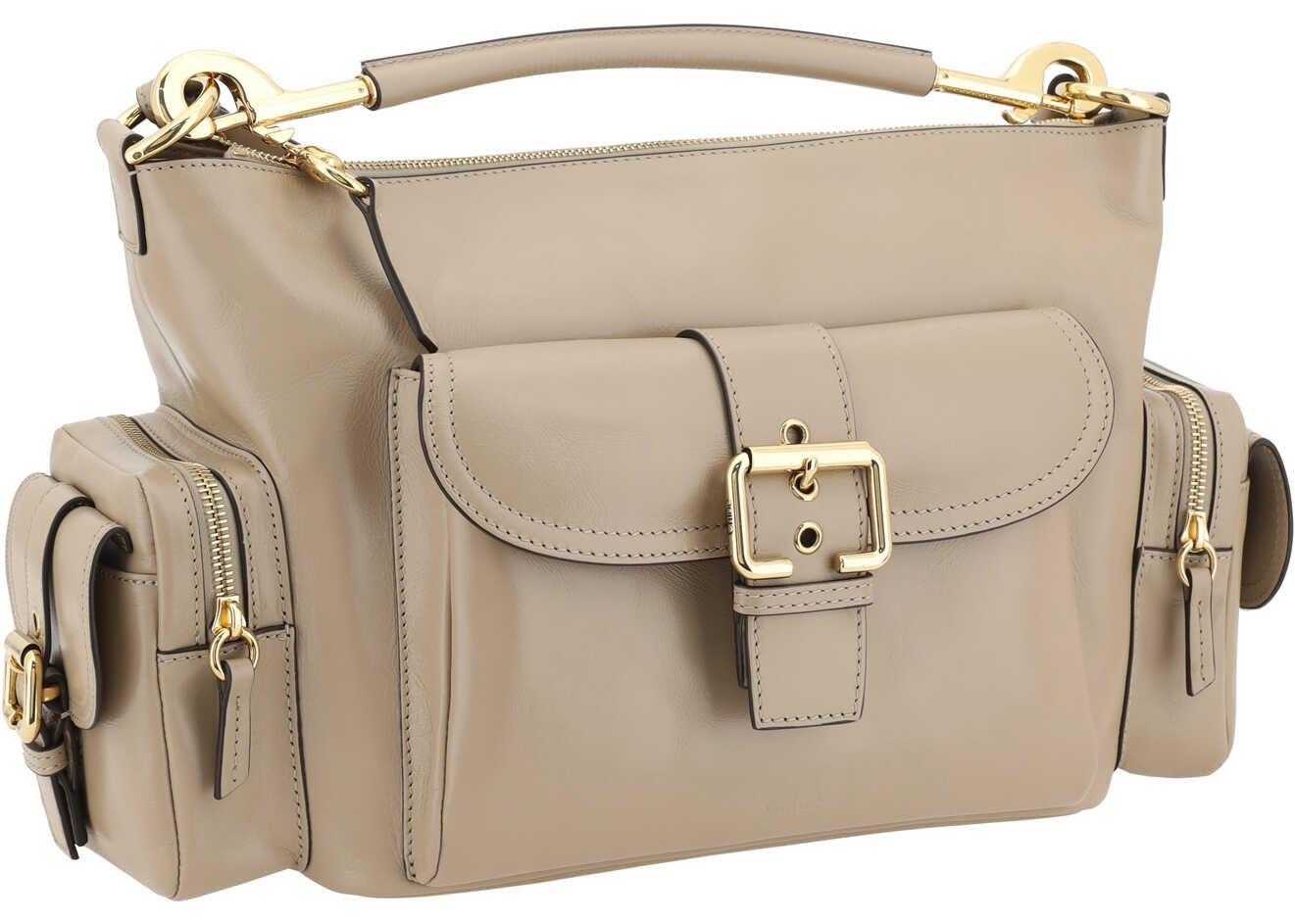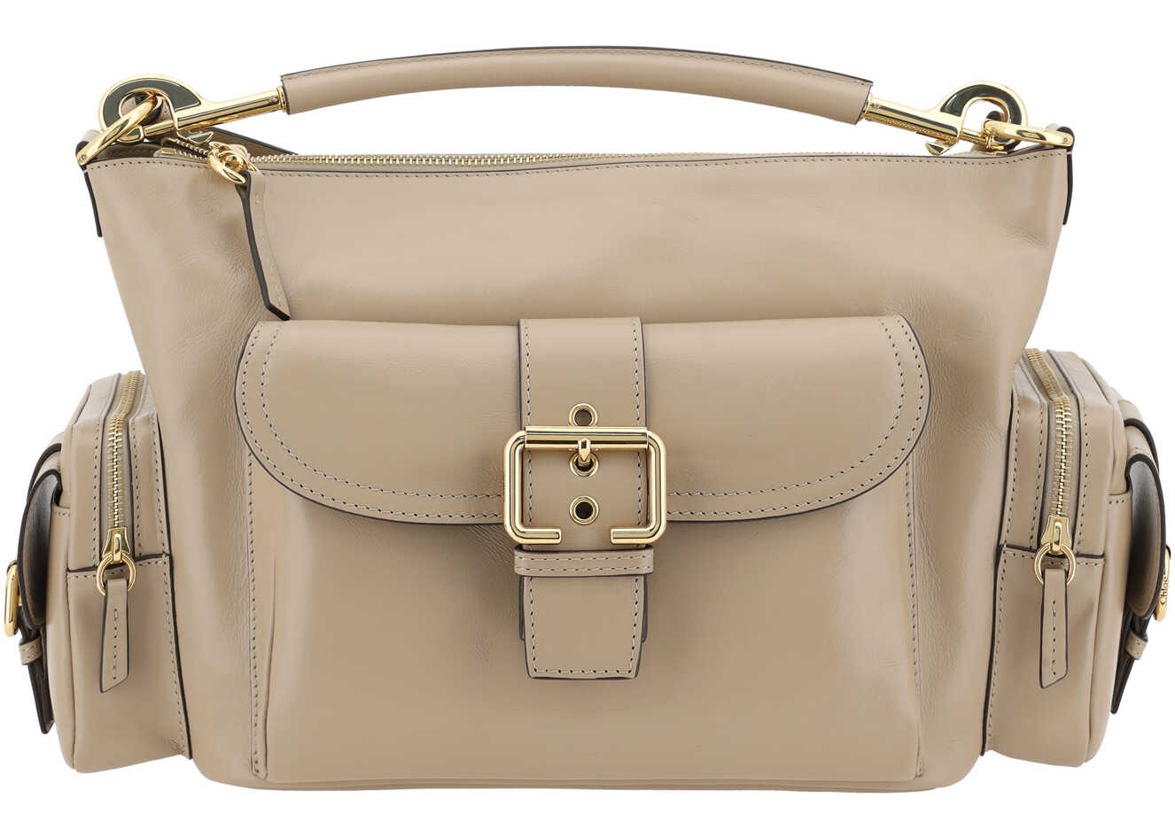 Chloé's Camera Handbag is a versatile and sophisticated accessory made of high-quality leather. It features a removable tubular handle on top for a stylish carrying option, along with an adjustable flat shoulder strap that can be removed to fit different needs. The zippered top closure provides security, while the two zippered side pockets offer convenience. An additional front pocket with flap and strap adds a distinctive touch. Inside, a single compartment allows you to organize your belongings in style.