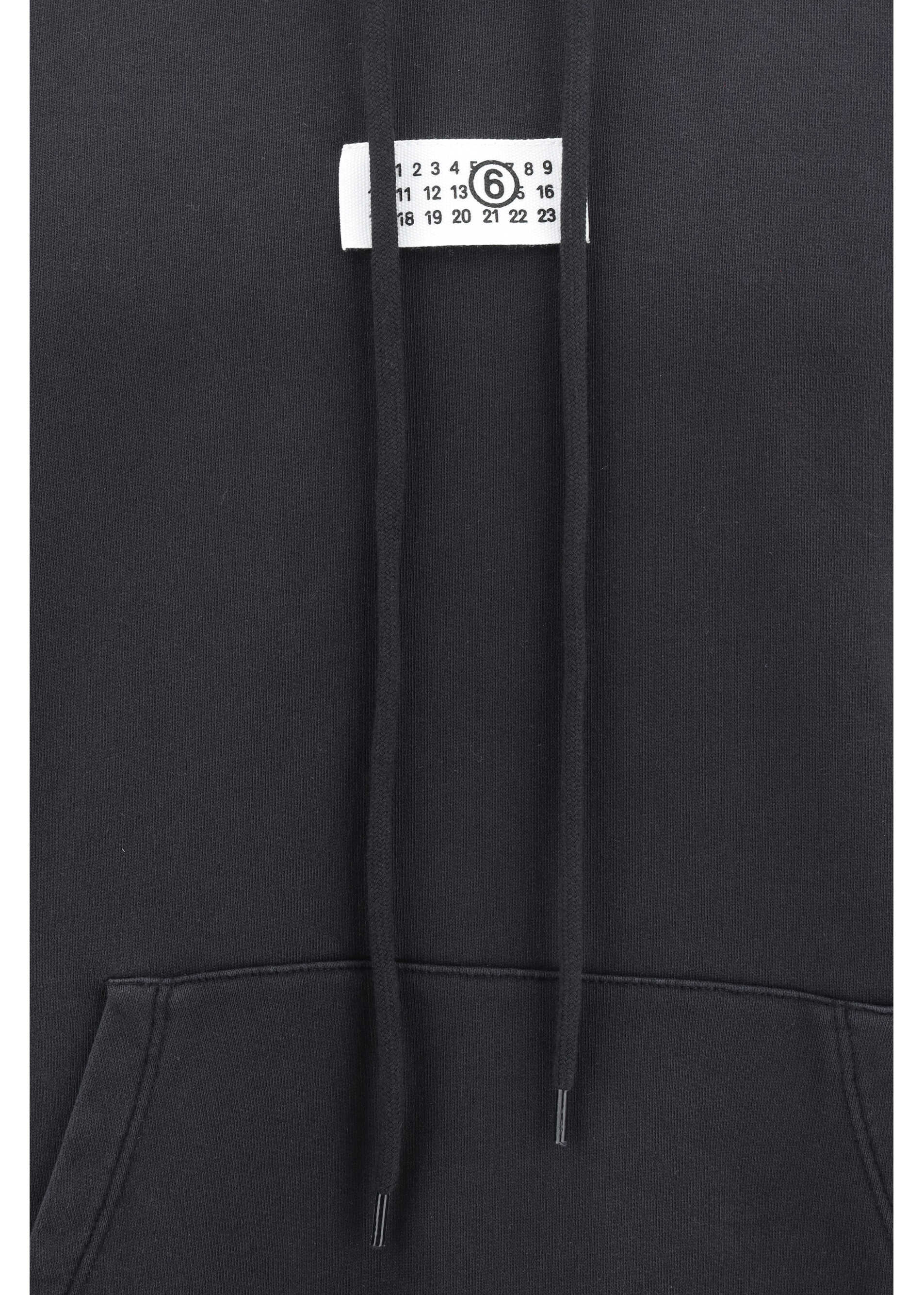 MM6's cotton Hoodie by MM6 features an adjustable drawstring hood and an applique patch with the brand's iconic logo on the front. The front kangaroo pocket adds functionality, while the ribbed cuffs and hem ensure a comfortable fit. The monochrome pattern gives the garment an understated and versatile look, ideal for casual yet refined style.