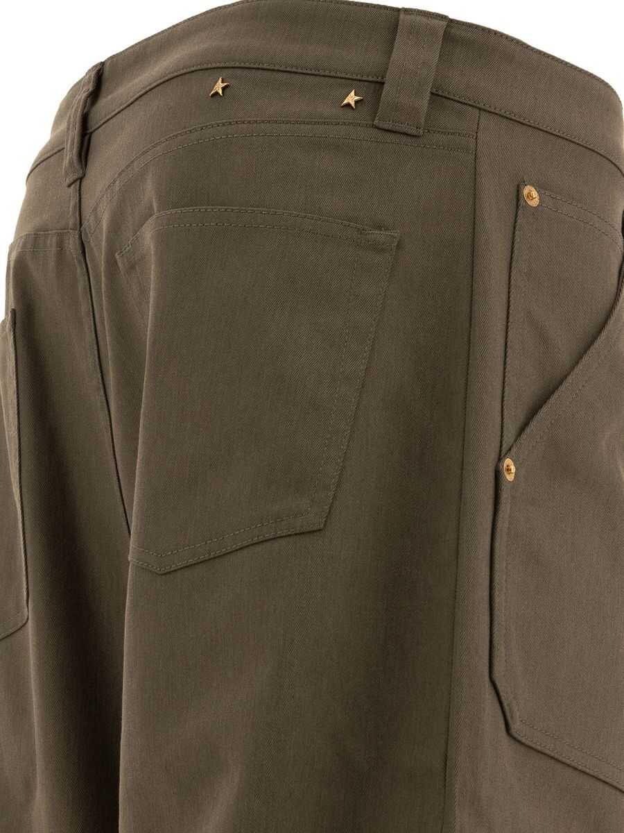 Golden Goose Deluxe Brand's cargo trousers crafted in military green cotton blend. Featuring metal button / zip closure, belt loops and multiple pockets. The design is completed by the brand's typical metallic half stars at back.