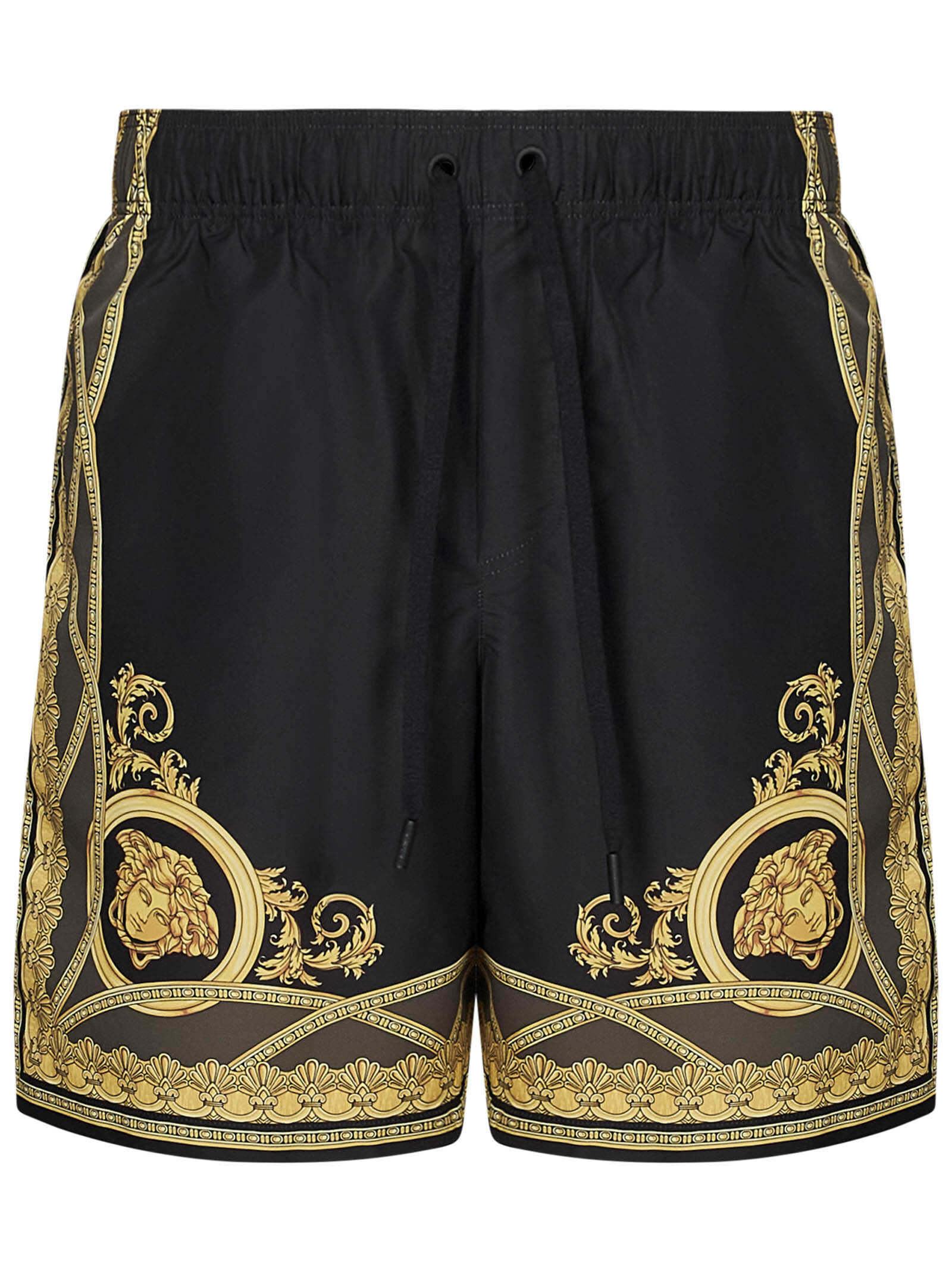 La Coupe Des Dieux black nylon beach shorts with La Coupe des Dieux print.