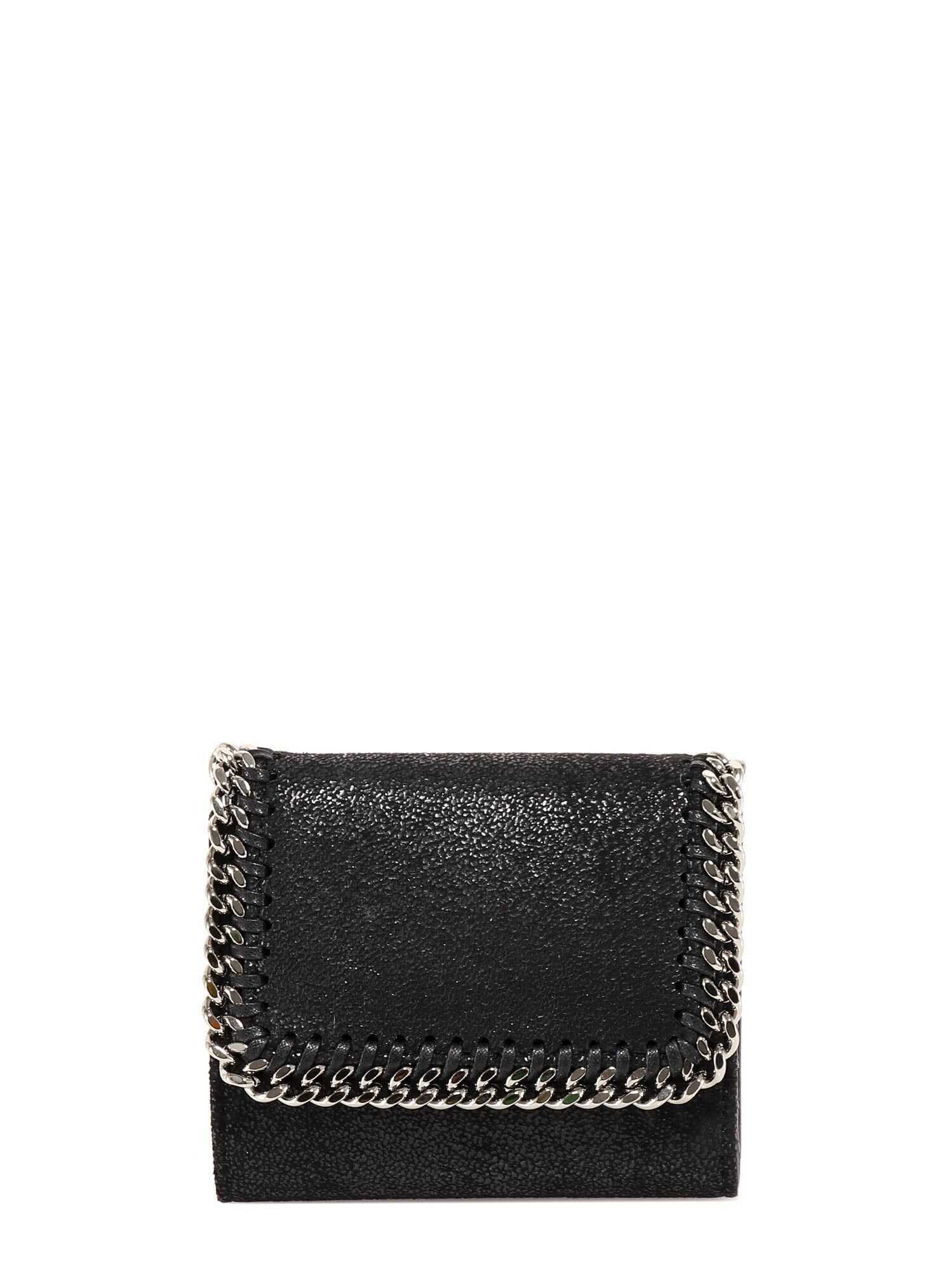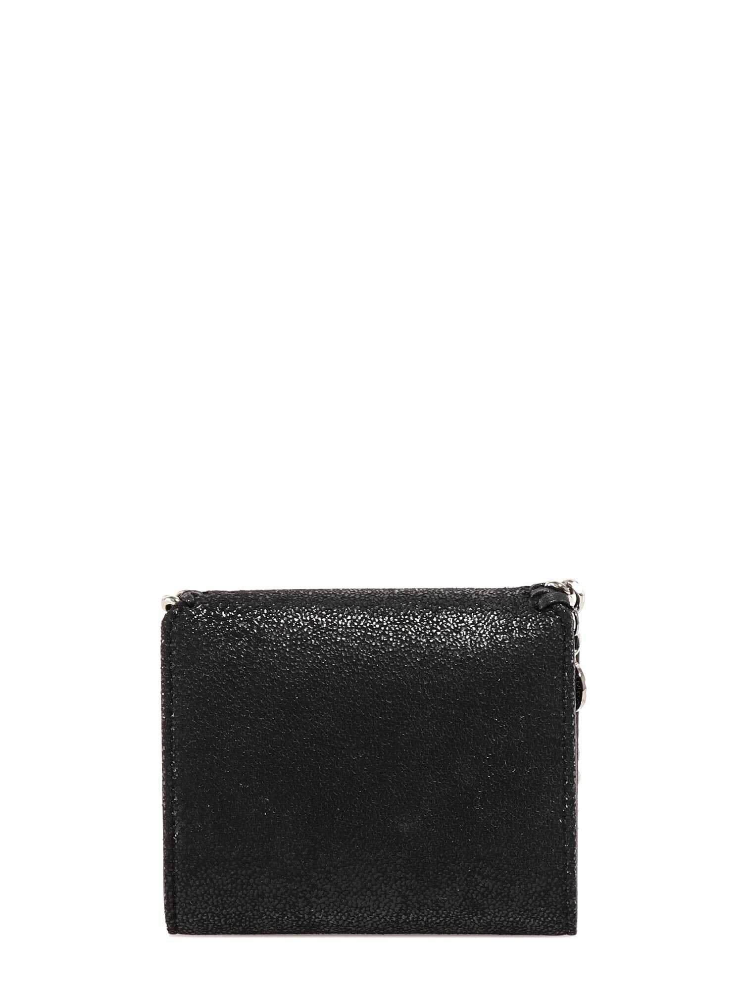 Introducing the Falabella shaggy deer wallet in Black by STELLA MCCARTNEY. Crafted with conscious materials, this wallet features profiles with a metal chain, closure with snap buttons, an internal zip pocket, and six compartments for credit cards. With a width of 4.53, height of 3.94, and depth of 0.79, this wallet is perfect for carrying your essentials. Shop now and enjoy the stylish functionality of this must-have accessory.