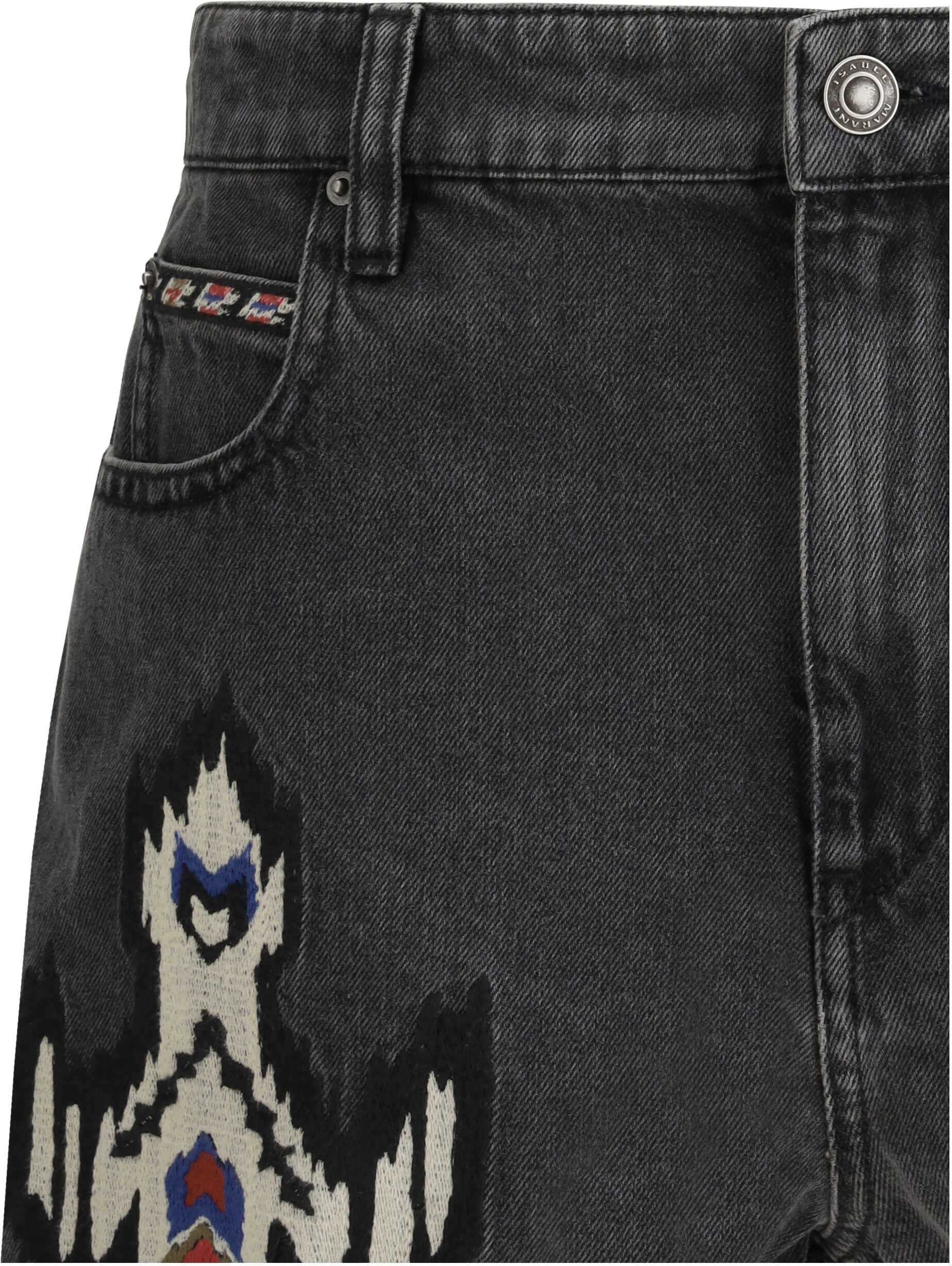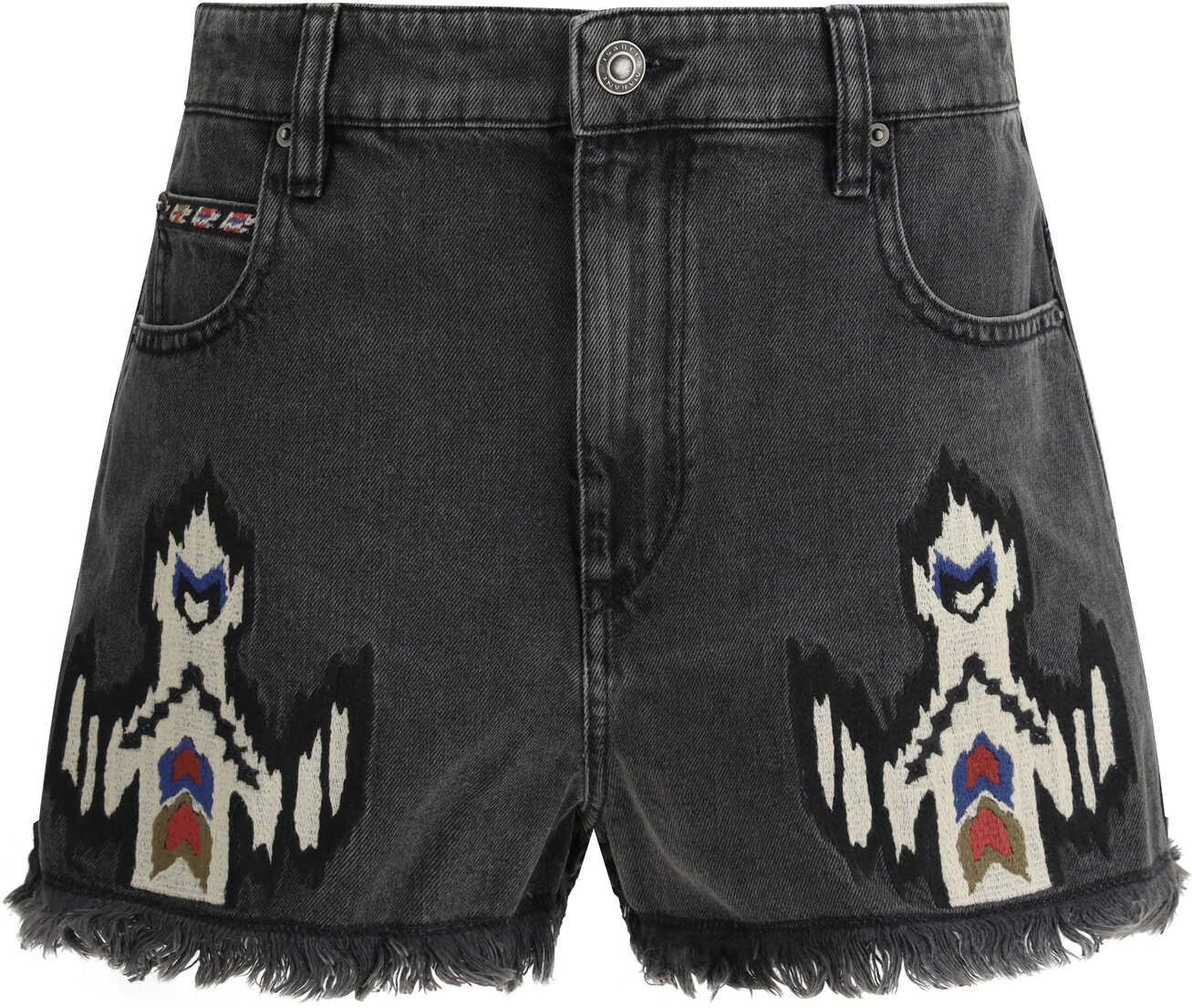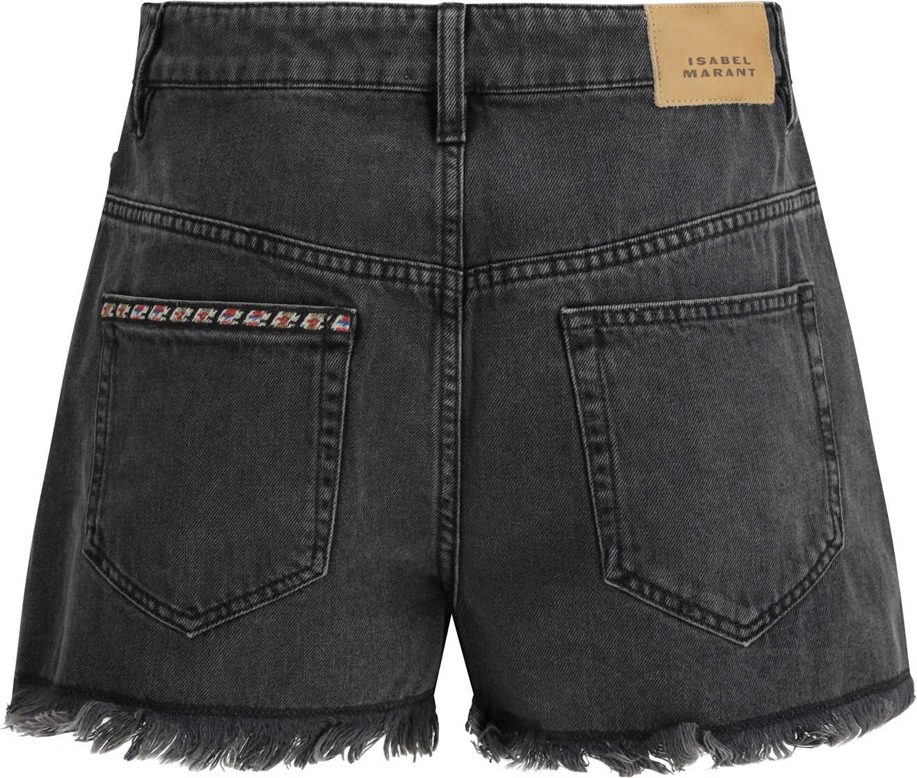 Marant Etoile's cotton Lesia Shorts are a casual and refined piece perfect for summer. The five-pocket design offers a classic and practical fit, while the front zipper-and-button closure ensures comfort and style. The leather patch with the brand's iconic monogram adds a distinctive and recognizable detail. The embroidered design on the front panels lends a touch of originality and texture, while the denim design makes these shorts a versatile garment that is easy to mix and match for a casual, modern look.