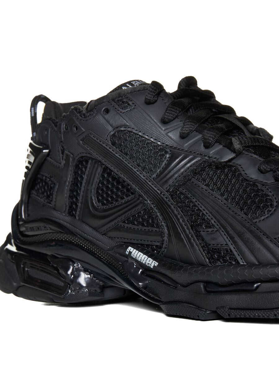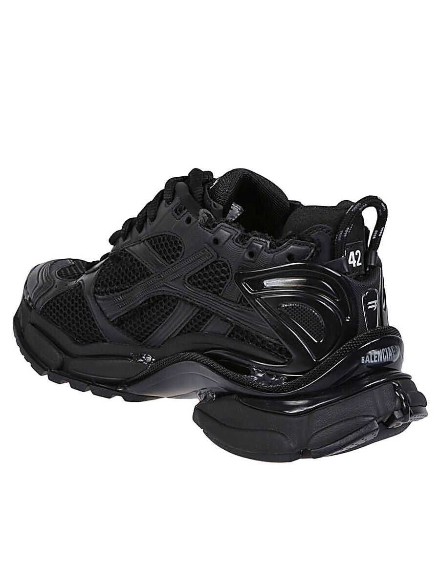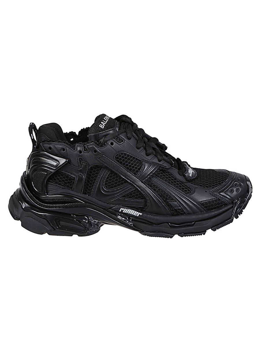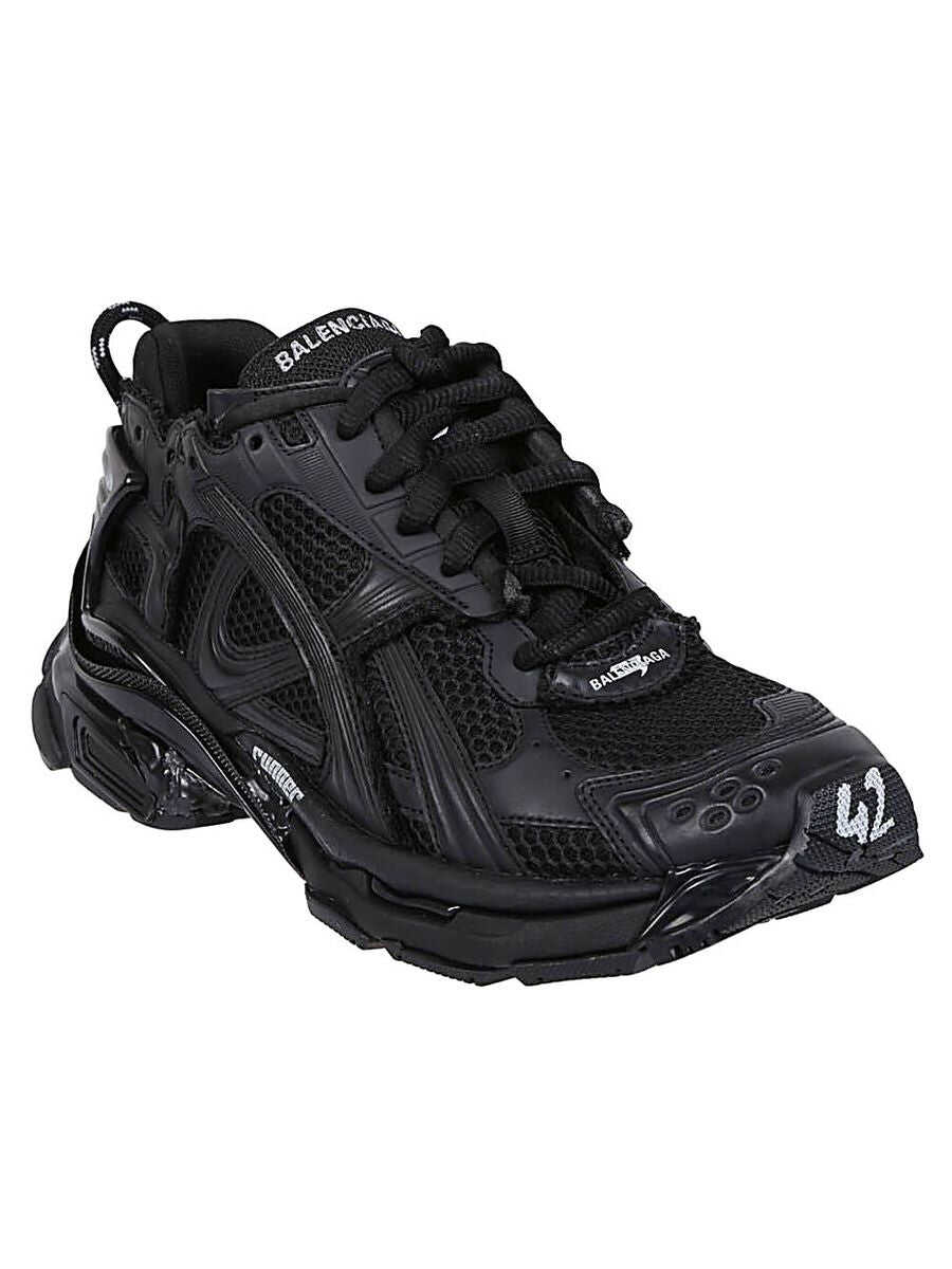 Black sneaker, with a consumed effect, imprinted size posteriorly, cut printed on the edge on the tip, externally printed runner logo, Balenciaga logo on the tongue and on the back. Heel 2,2 in / 5,5 cm