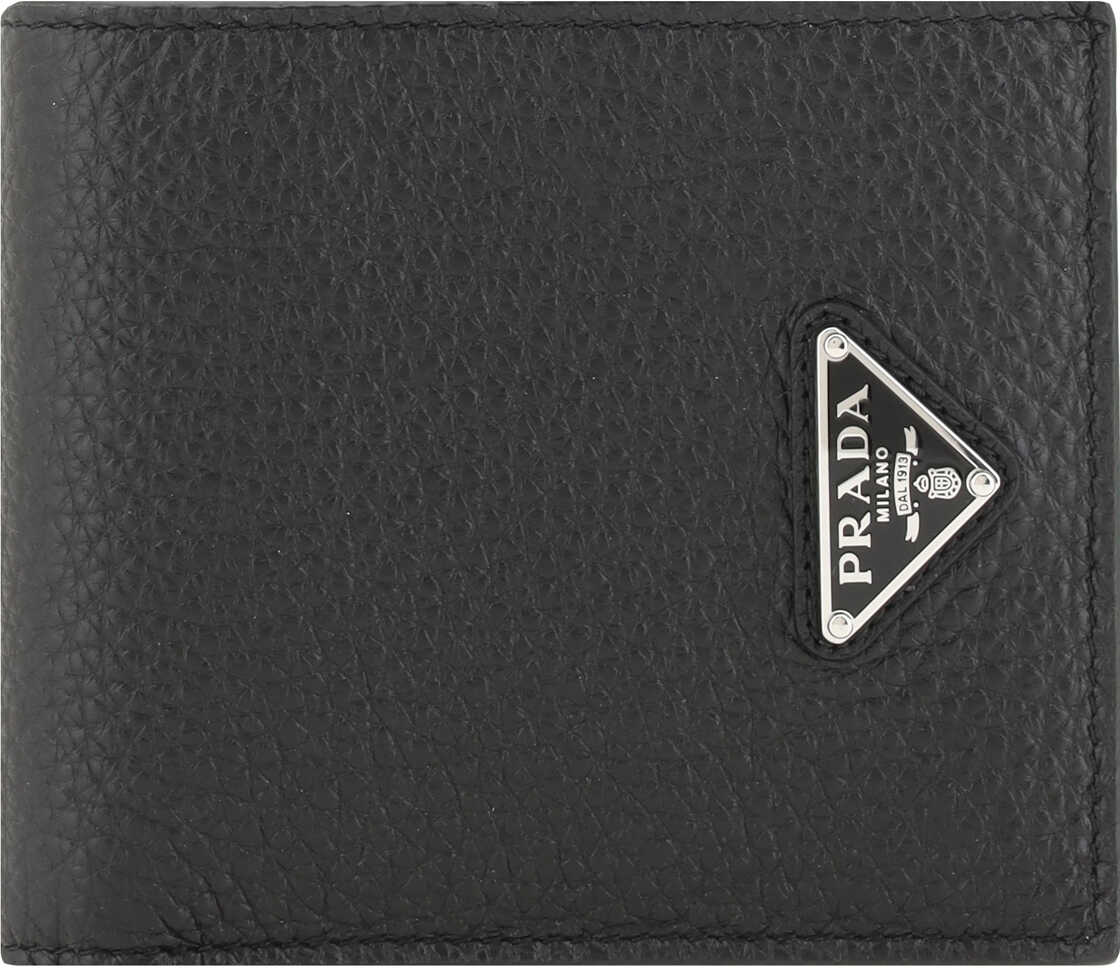 Prada's leather Wallet is a bifold model with an interior bill compartment and card slots for optimal functionality. The iconic enameled triangular plaque stands out on the front, while the brand's monogram is elegantly engraved on the inside. The leather interior lends a touch of luxury and quality to the design.
