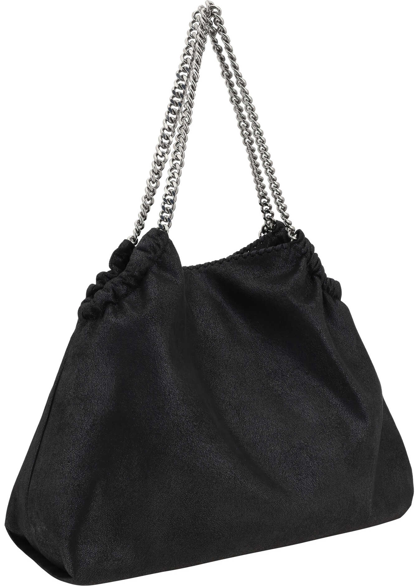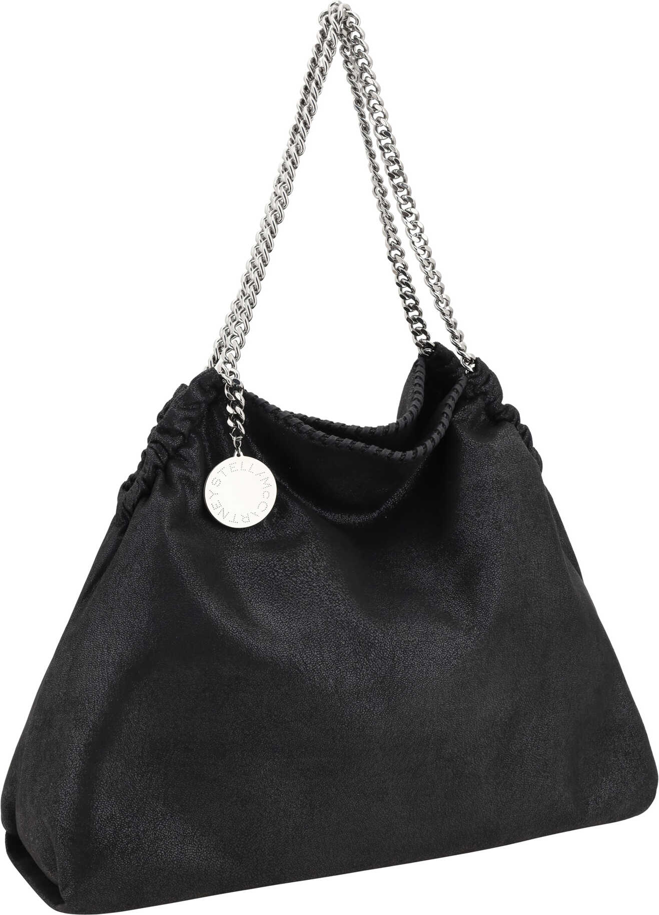 Stella McCartney's Falabella Shoulder Bag features two chain handles at the top, adding a touch of luxury and originality. The top closure is made with a practical magnetic button, ensuring security and ease of use. On the front, a charm with the brand's iconic monogram completes the design, lending further recognition to the piece. The interior features a single compartment, perfect for storing essentials neatly. With its distinctive aesthetic and mix of sustainable materials, this bag is a chic and versatile accessory.