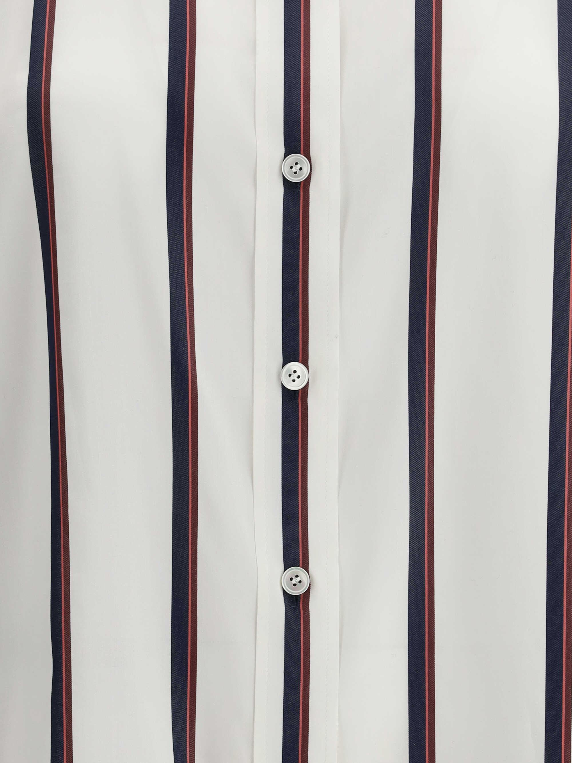 Alexander McQueen's Silk Striped Shirt is a sophisticated and luxurious piece, ideal for those seeking an elegant look with a modern twist. Featuring a classic collar, this shirt offers a refined silhouette, while the front button closure ensures practicality and a clean design. The all-over striped pattern creates an interesting visual contrast, adding movement to the garment.