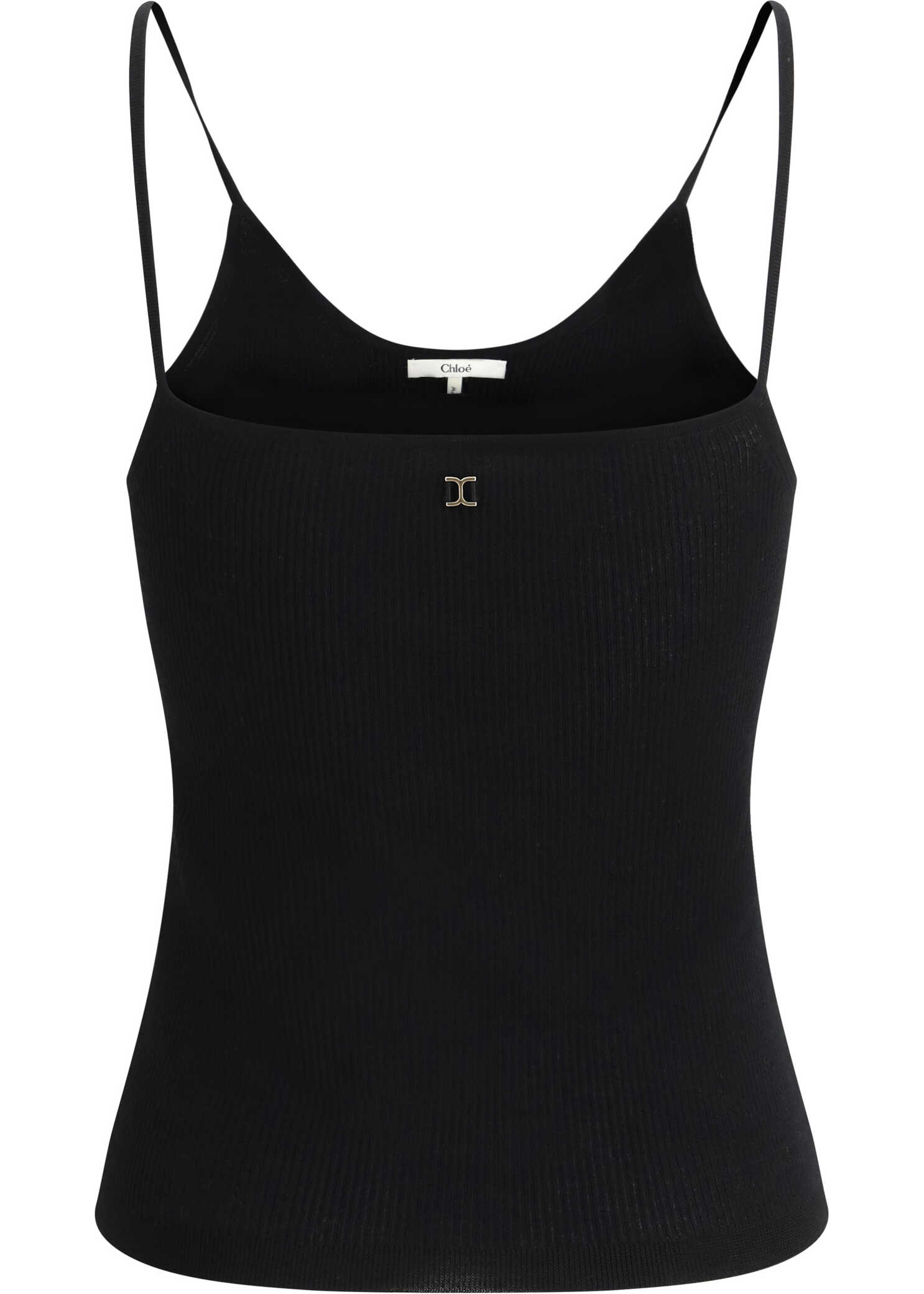 Chloé's wool Top features thin straps and a ribbed design that enhances its structure. The three-dimensional plaque with the brand's iconic logo applied in contrast on the front adds a distinctive and refined touch. The monochrome pattern makes the garment versatile and elegant, perfect for creating a sophisticated and modern look.