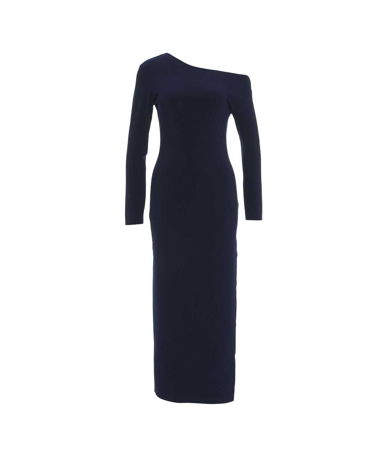Elevate your style with this stunning drop shoulder dress in a beautiful shade of Blue by NORMA KAMALI. Made from 95% PES and 5% EL, this dress features a modern silhouette and is perfect for any occasion. Dry clean recommended. Shop now and make a chic statement!