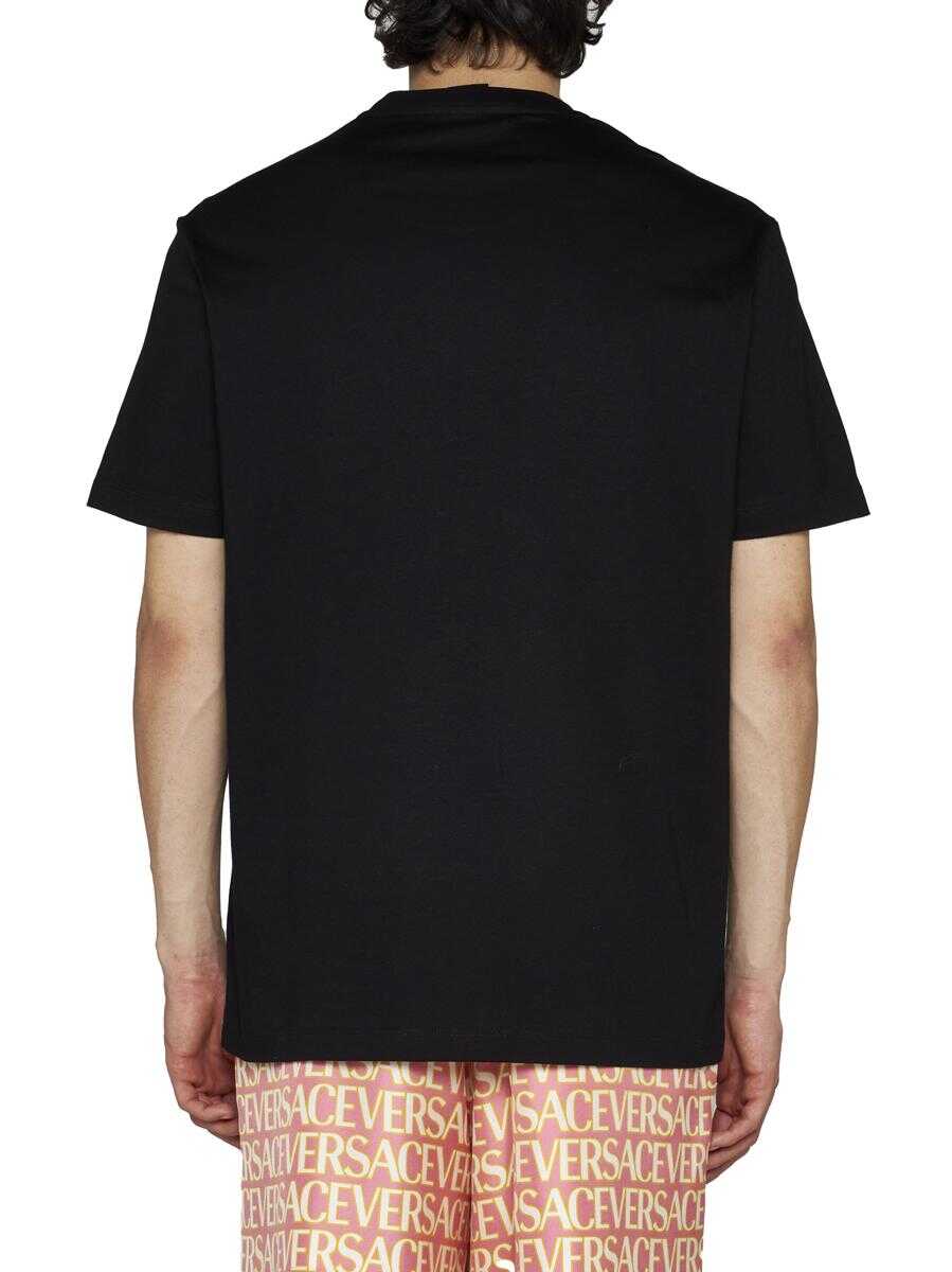 Seashell Baroque logo cotton T-Shirt from Versace featuring black, cotton, crew neck, short sleeves, embroidered logo to the front and straight hem.