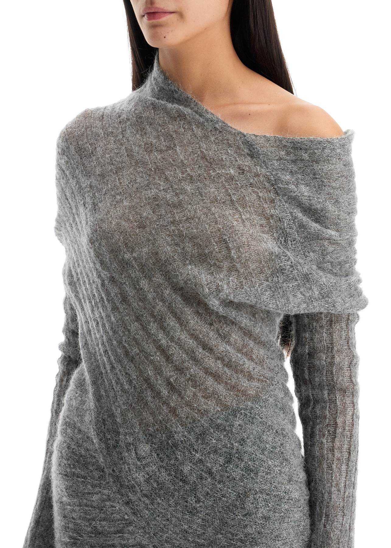 Crafted from a lightweight and soft blend of responsible alpaca and mohair, this Paloma Wool top features delicate flat ribbing and an asymmetrical design with an off-shoulder neckline. The silhouette is relaxed, with a fitted hem at the hips. The model is 177 cm tall and wears size XS.