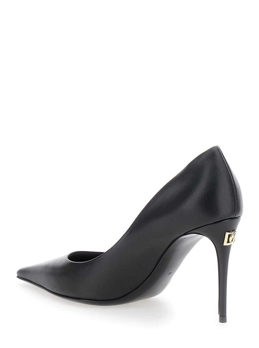black calf leather smooth grain 95mm high stiletto heel gold-tone logo plaque pointed toe branded leather insole leather sole