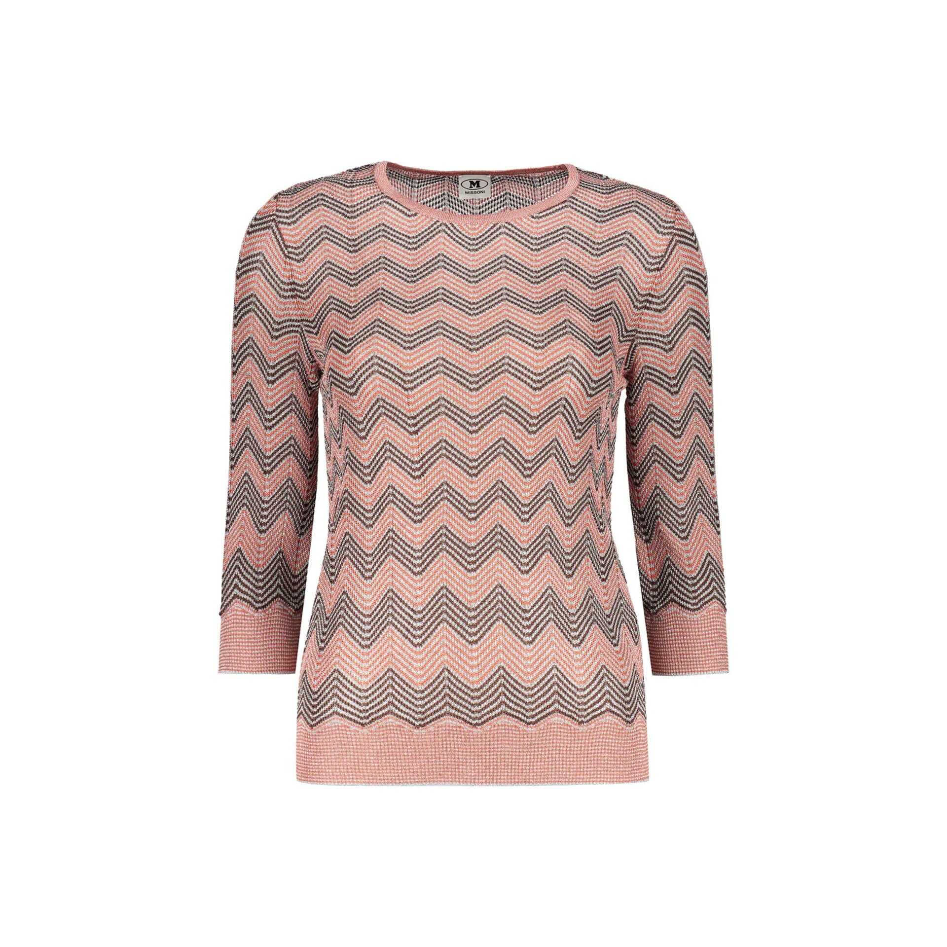 - Composition: 13% Polyester 24% Rayon 63% Viscose - Crew neck - Three-quarter sleeves - Machine wash (delicate) - Zig zag pattern - Model with lurex threads - Made in Ukraine - Gender: WOMEN - MPN MDN00658BK024P_SM8TW - Code: KNT MI 2 CW FW24 12313