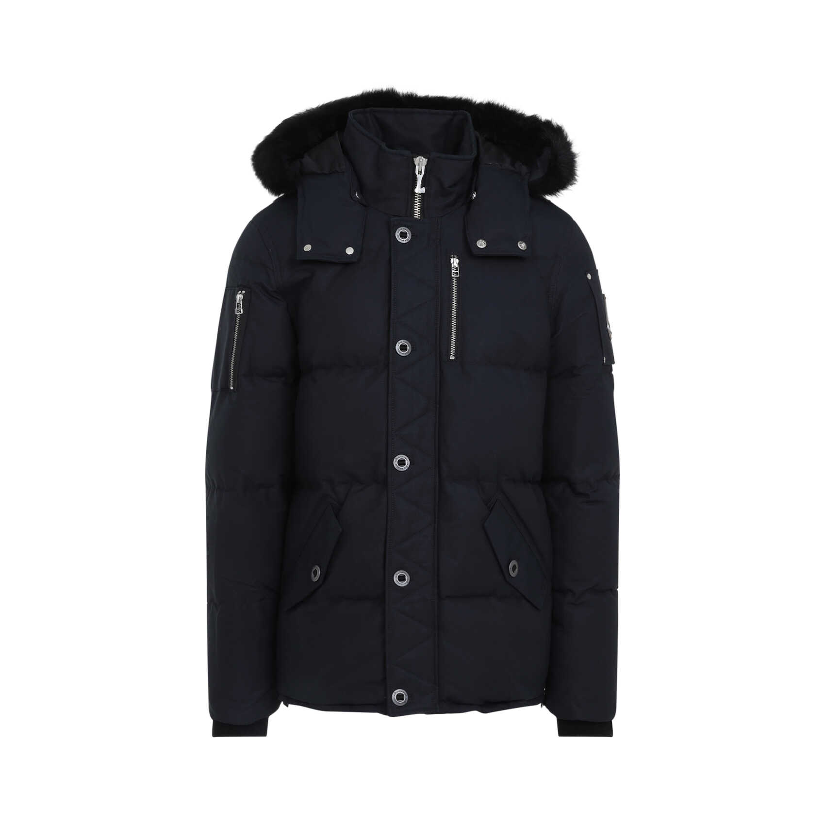 Moose Knuckles Navy 3Q Fur Jacket. Navy durable water-repellent cotton and nylon blend, detachable adjustable hood with a fur trim. Front concealed two-way zip fastening, four pockets, rib-knit storm cuffs with adjustable zipper vents. Metal logo at the left sleeve, fully lined.